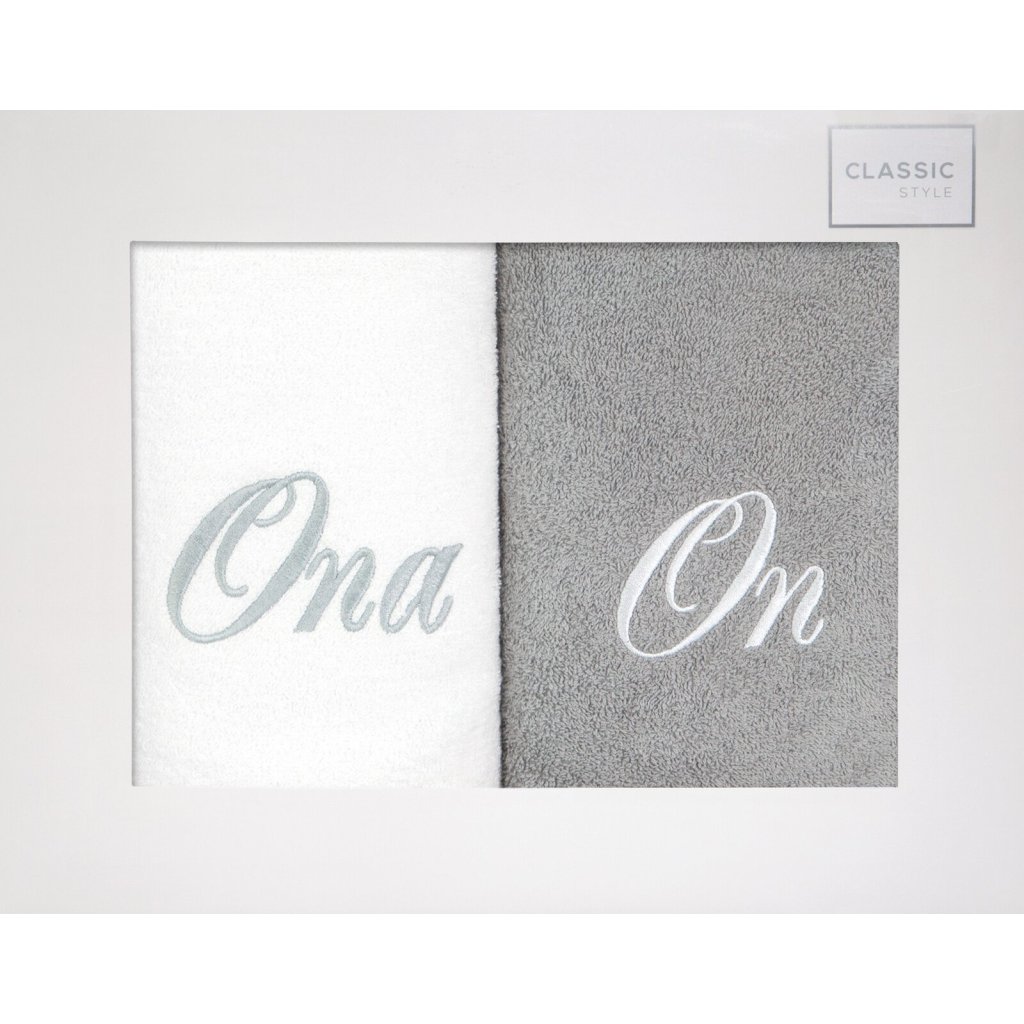 Sada ručníků v kontrastních barvách zdobených osobními vyšívanými nápisy SHE a HE je skvělým nápadem na praktický a krásný dárek pro pár k jakékoli příležitosti. Ručníky jsou vyrobeny z měkké a savé bavlny, příjemné na dotek a velmi odolné. Díky vysoké kvalitě ručníků a estetické výšivce budou pozoruhodnou památkou po mnoho let. Sada je zabalena v estetické dárkové krabičce. Sada obsahuje 2 ks ručníků o rozměrech: 70x140 cm, barva: bílá a šedá, gramáž: 400 GSM, složení: 100% bavlna.Buďte první, kdo napíše příspěvek k této položce.