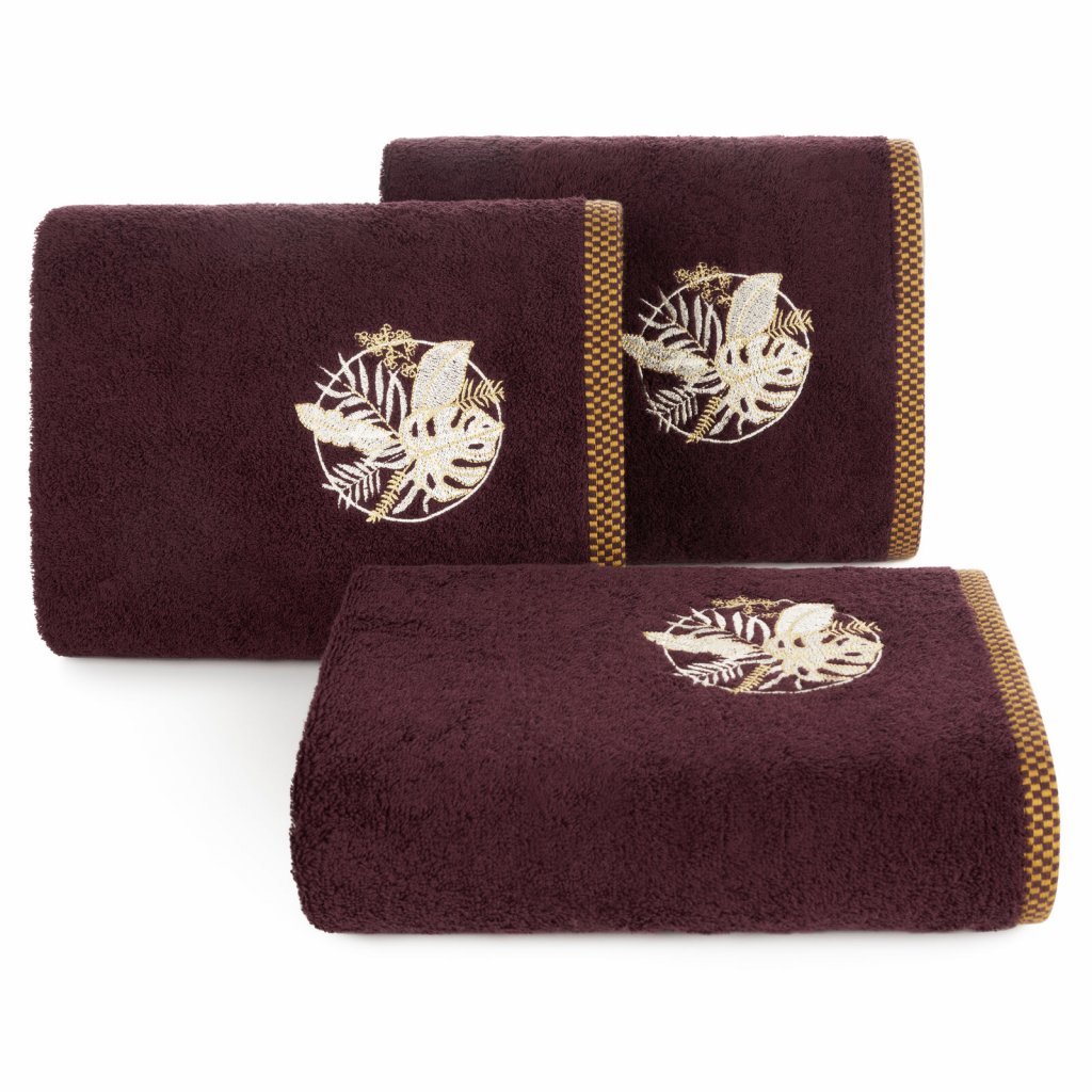 Ručník s výšivkou a ozdobným lemem, šířka: 50 cm, délka: 90 cm, barva: vínová, hmotnost: 500 GSM, složení: 100% bavlna; ozdobná část: 100% polyester.Doplňkové parametry