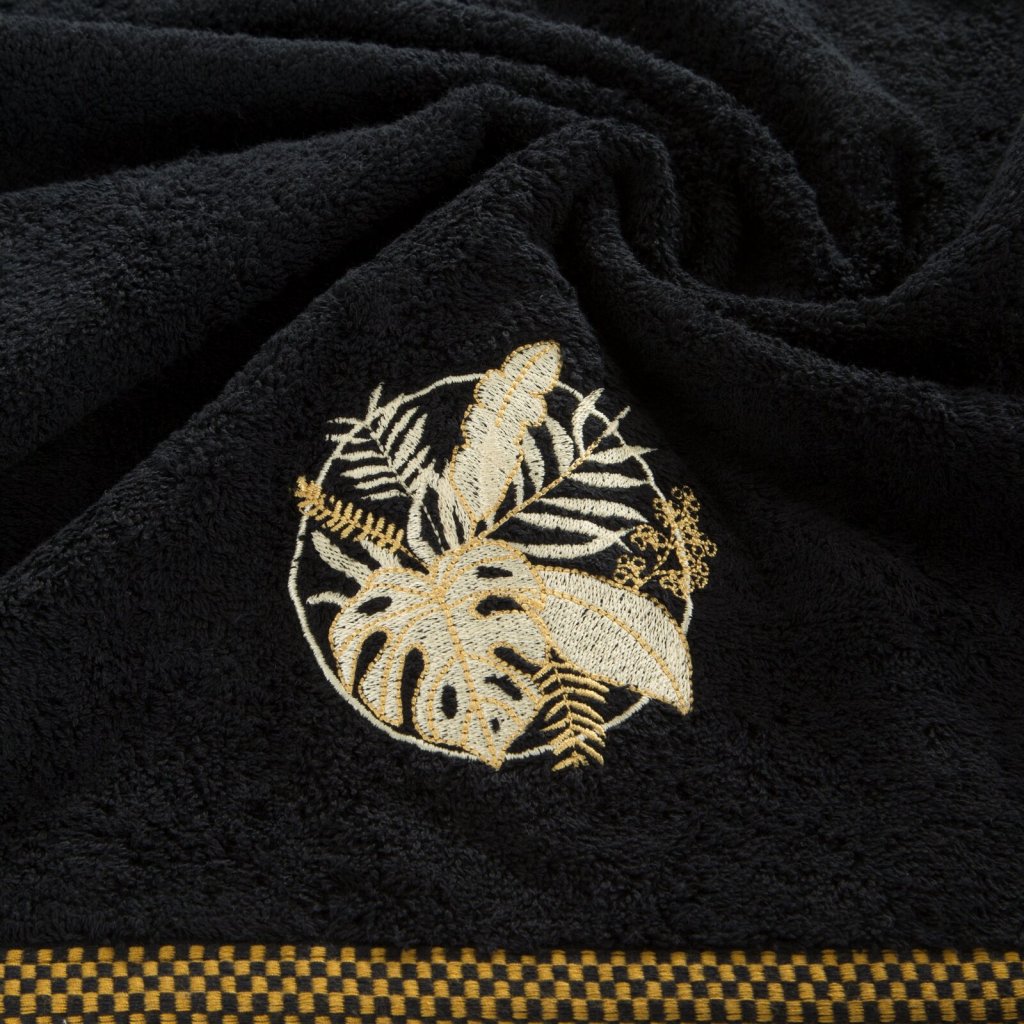 Ručník s výšivkou a ozdobným lemem, šířka: 50 cm, délka: 90 cm, barva: černá, hmotnost: 500 GSM, složení: 100% bavlna; ozdobná část: 100% polyester.Doplňkové parametry