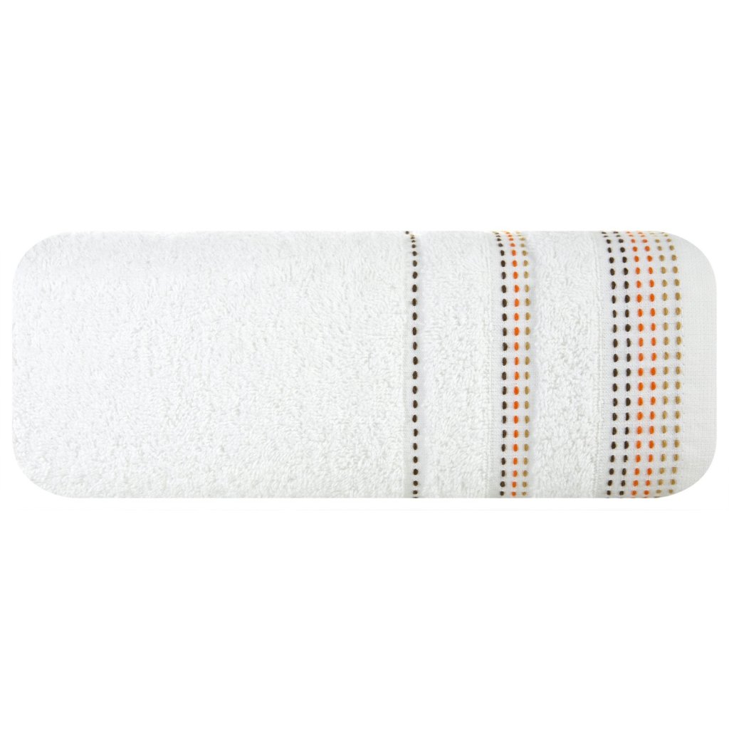 Jednobarevný ručník z měkkého a savého bavlněného froté zdobeného barevným lemováním. Snadno omyvatelný, nezanechává skvrny. Šířka: 50 cm, délka: 90 cm, barva: bílá, gramáž: 500 GSM, složení: 100% bavlna.Doplňkové parametry