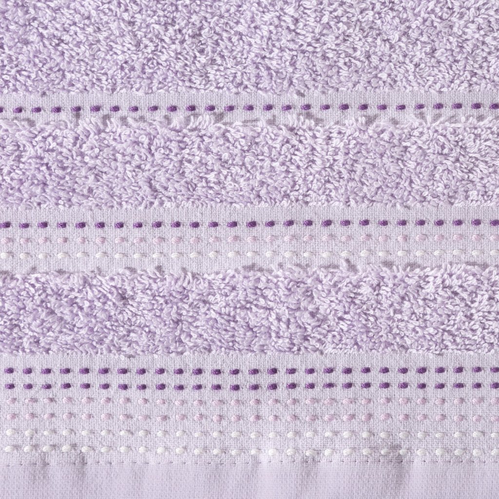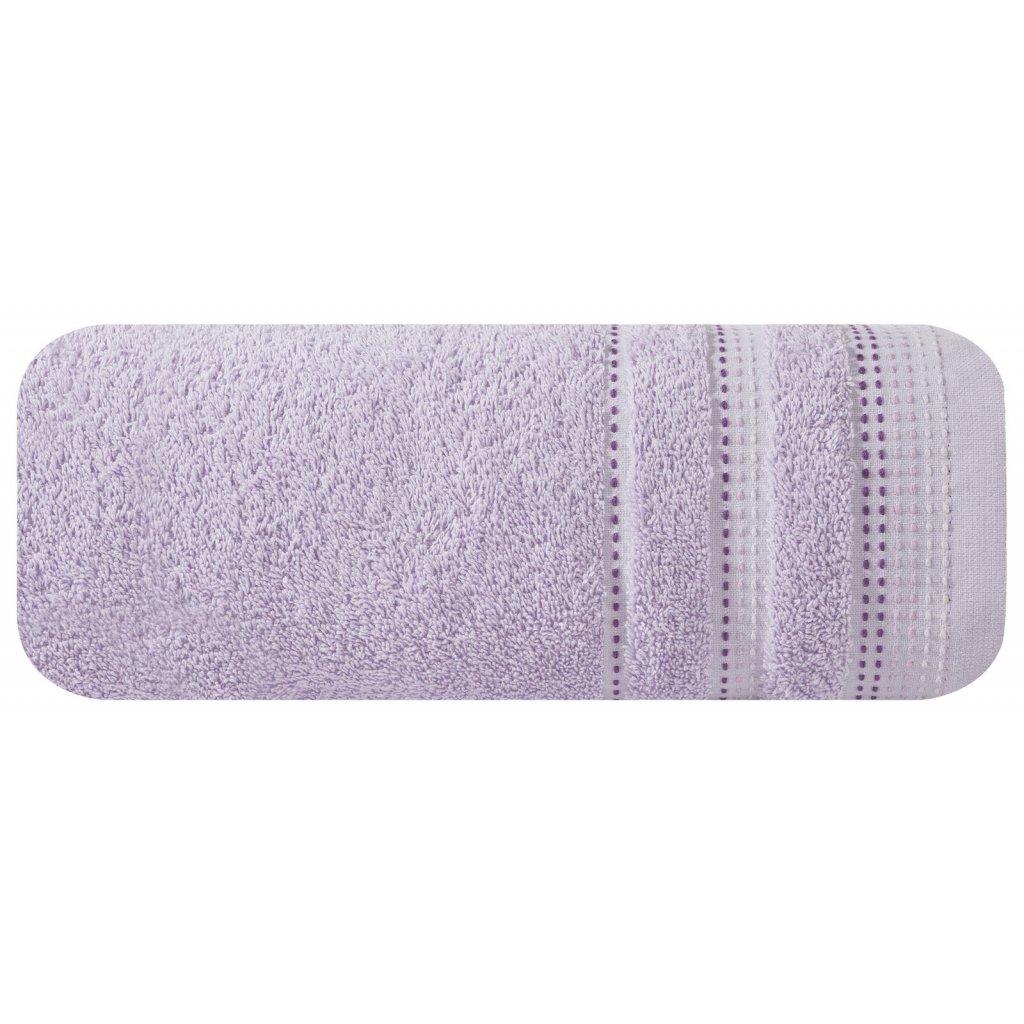 Jednobarevný ručník z měkké a savé bavlněné tkaniny s froté vazbou zdobený barevným lemováním. Šířka: 50 cm, délka: 90 cm, barva: světle fialová, hmotnost: 500 GSM, složení: 100% bavlna.Doplňkové parametry