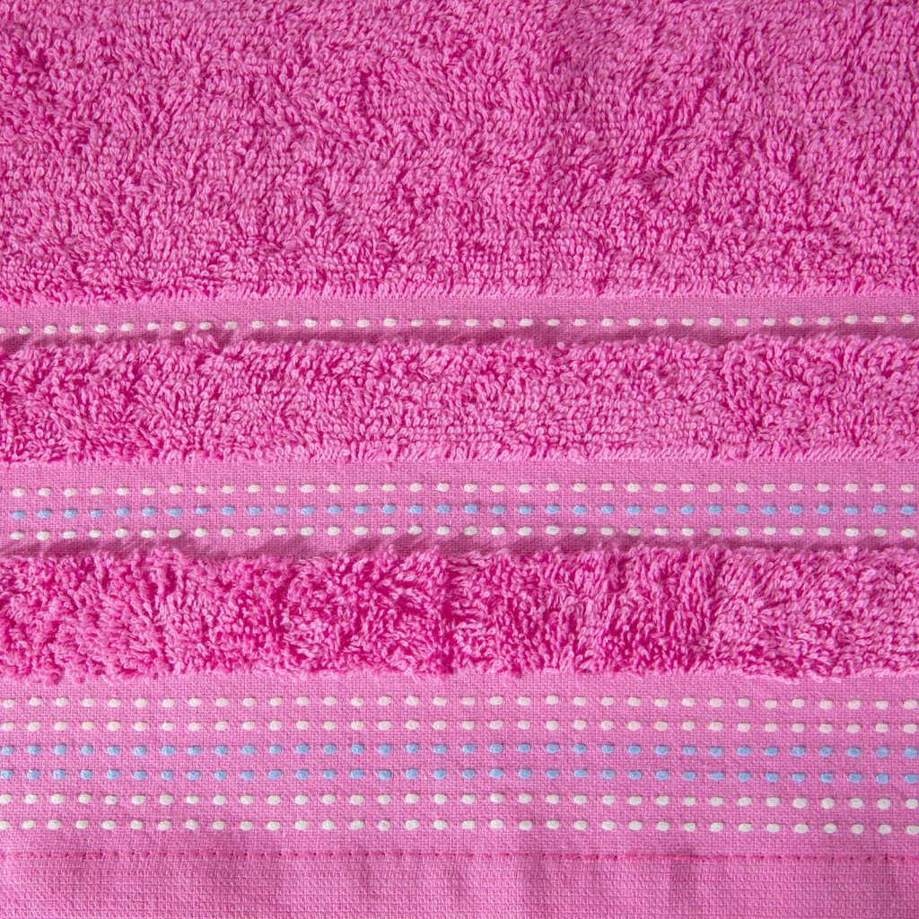 Jednobarevný ručník z měkké a savé bavlněné tkaniny s froté vazbou zdobený barevným lemováním. Šířka: 30 cm, délka: 50 cm, barva: růžová, hmotnost: 500 GSM, složení: 100 % bavlna.Doplňkové parametry