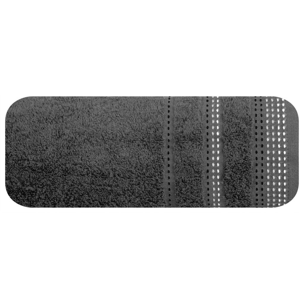 Jednobarevný ručník z měkké a savé bavlněné tkaniny s froté vazbou zdobený barevným lemem. Šířka: 30 cm, délka: 50 cm, barva: šedá, gramáž: 500 GSM, složení: 100 % bavlna.Doplňkové parametry