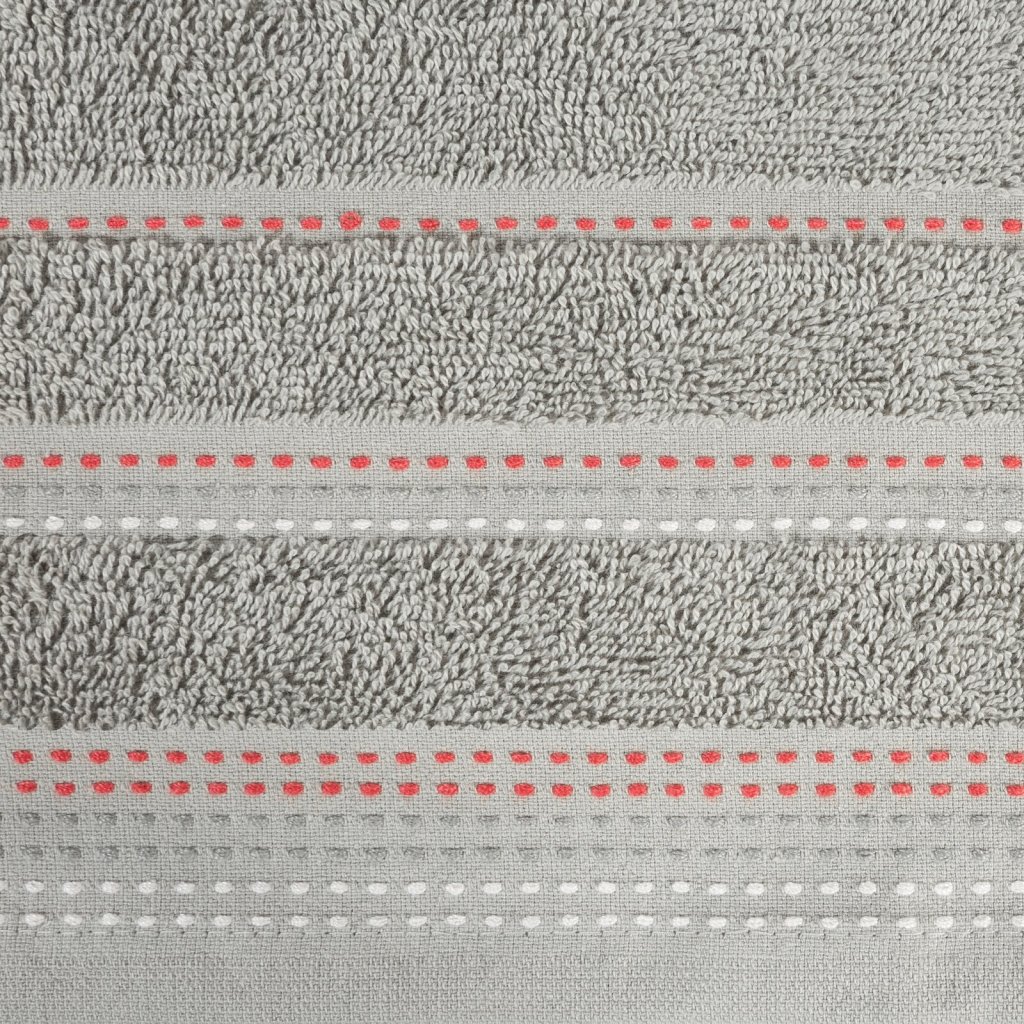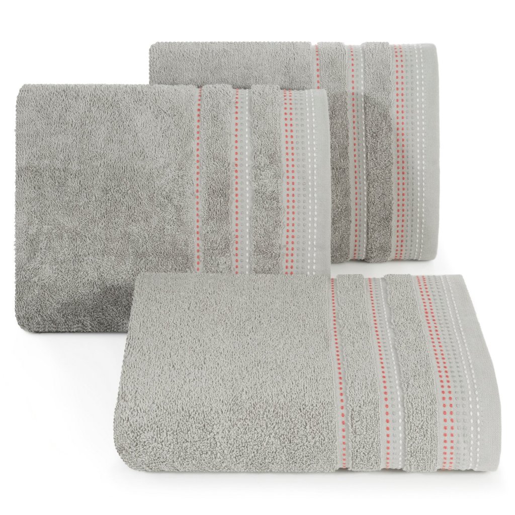 Jednobarevný ručník z měkké a savé bavlněné tkaniny s froté vazbou zdobený barevným lemem. Šířka 30 cm, délka 50 cm, barva: stříbrná, gramáž: 500 GSM, složení: 100% bavlna.Doplňkové parametry