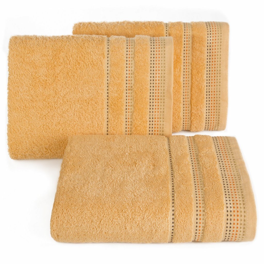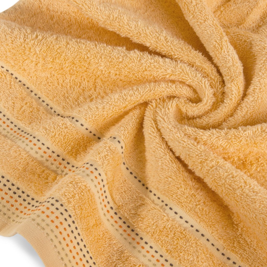 Jednobarevný ručník z měkké a savé bavlněné tkaniny s froté vazbou zdobený barevným lemem. Šířka: 30 cm, délka: 50 cm, barva: oranžová, hmotnost: 500 GSM, složení: 100% bavlna.Doplňkové parametry