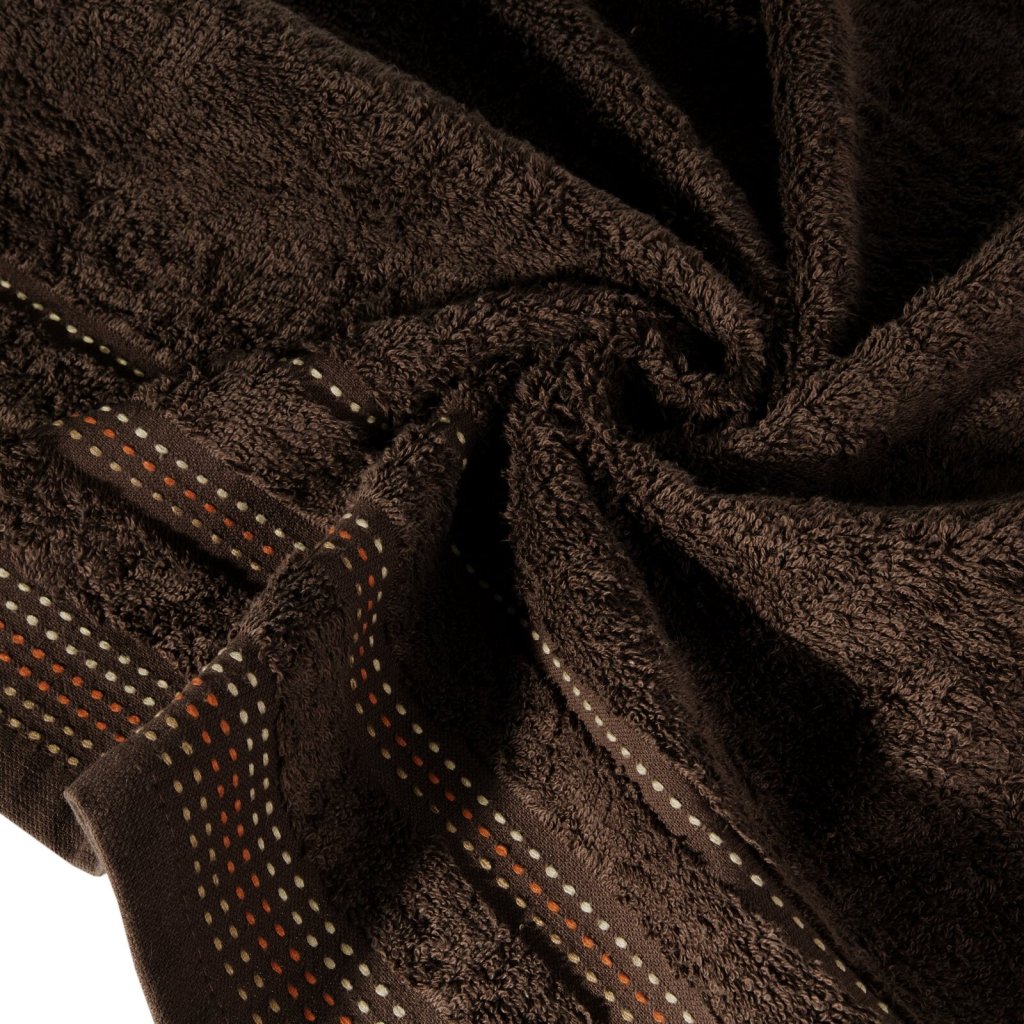 Jednobarevný ručník z měkké a savé bavlněné tkaniny s froté vazbou zdobený barevným lemováním. Šířka: 50 cm, délka: 90 cm, barva: hnědá, hmotnost: 500 GSM, složení: 100 % bavlna.Doplňkové parametry