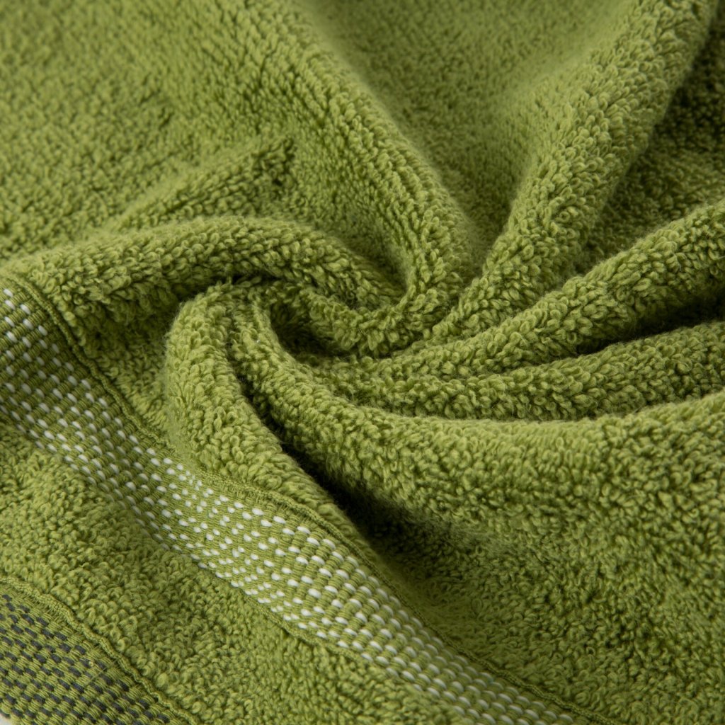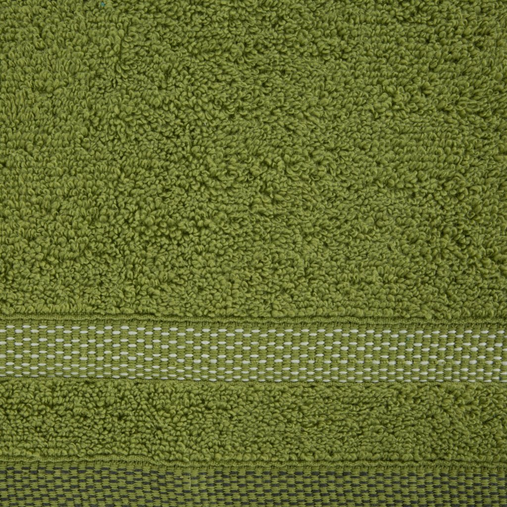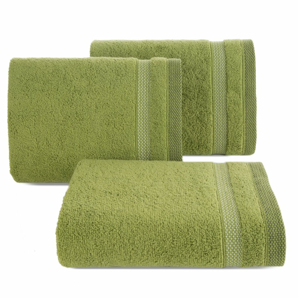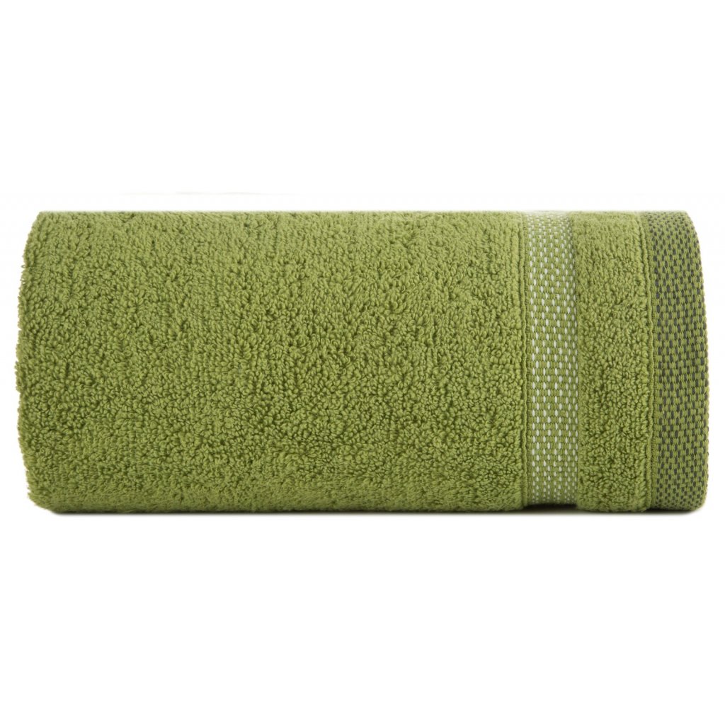 Ručník klasického charakteru zdobí elegantní pruhovaný lem s lesklými nitěmi. Šířka: 70 cm, délka: 140 cm, barva: olivová, gramáž: 400 GSM, složení: 100% bavlna; ozdobná část: 50% bavlna, 50% polyester.Doplňkové parametry