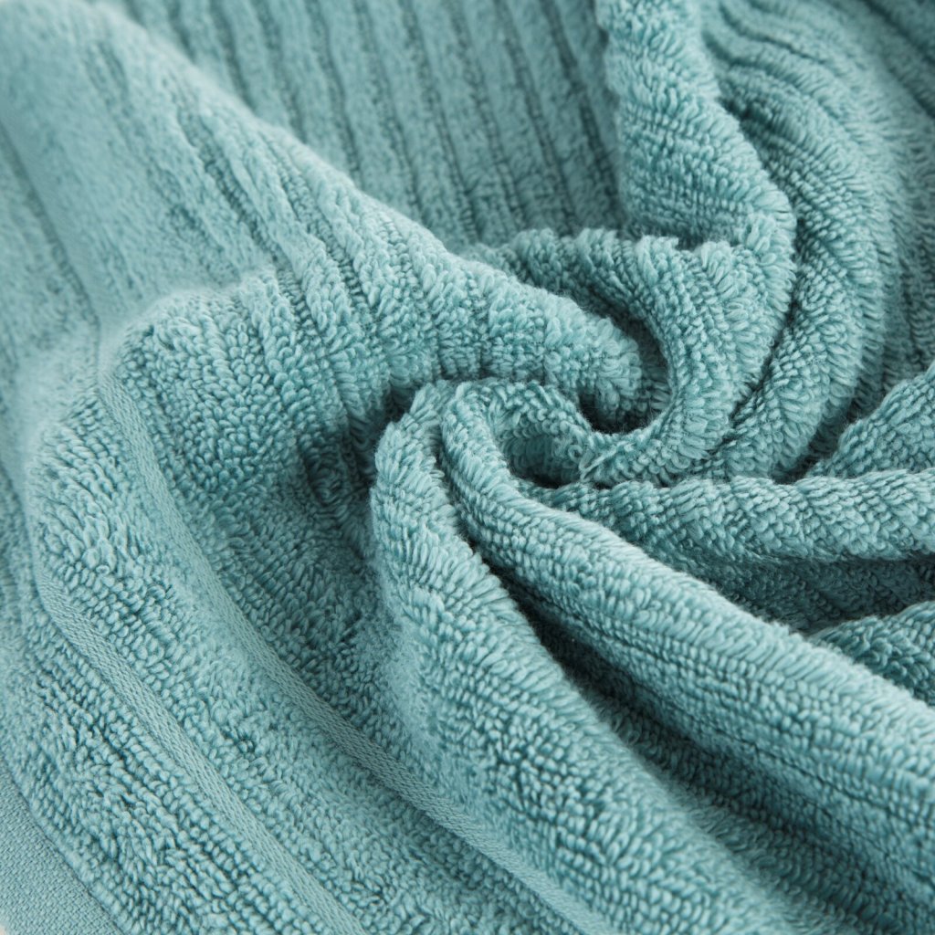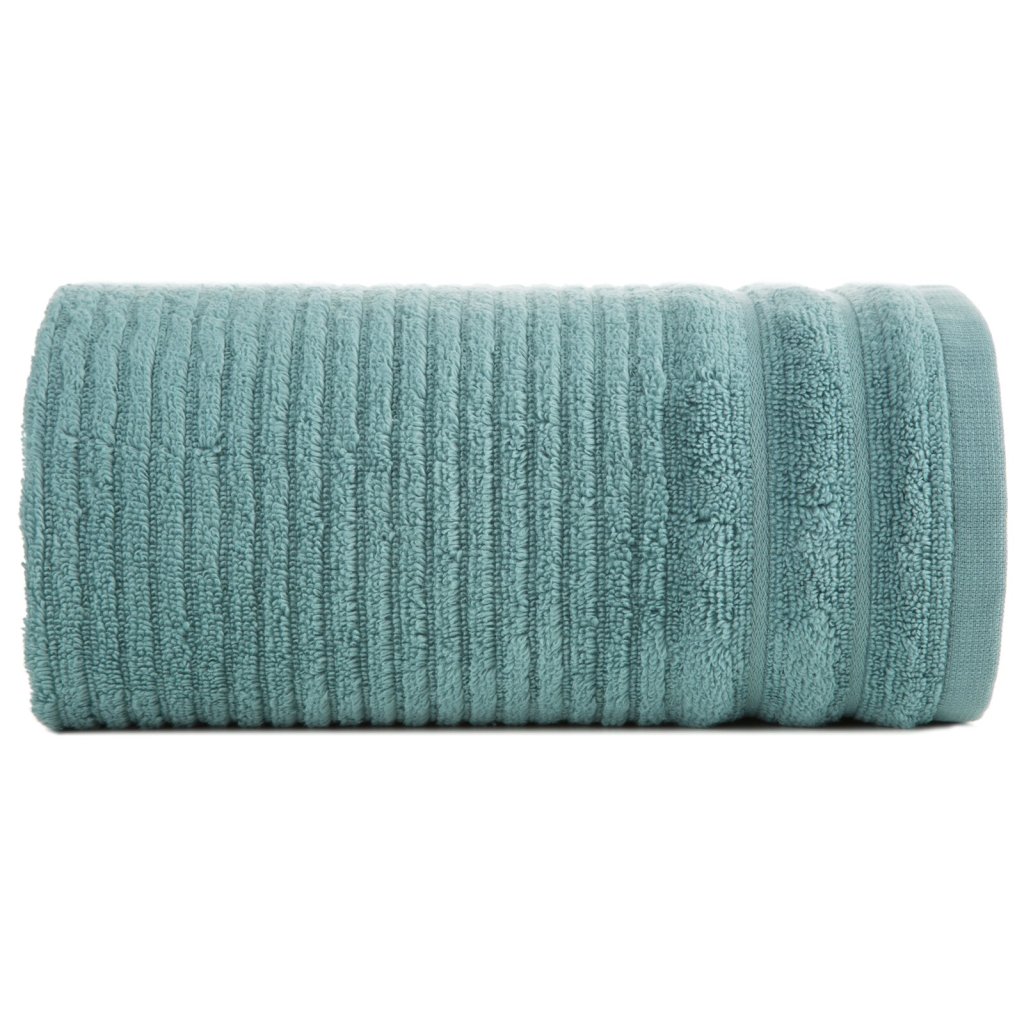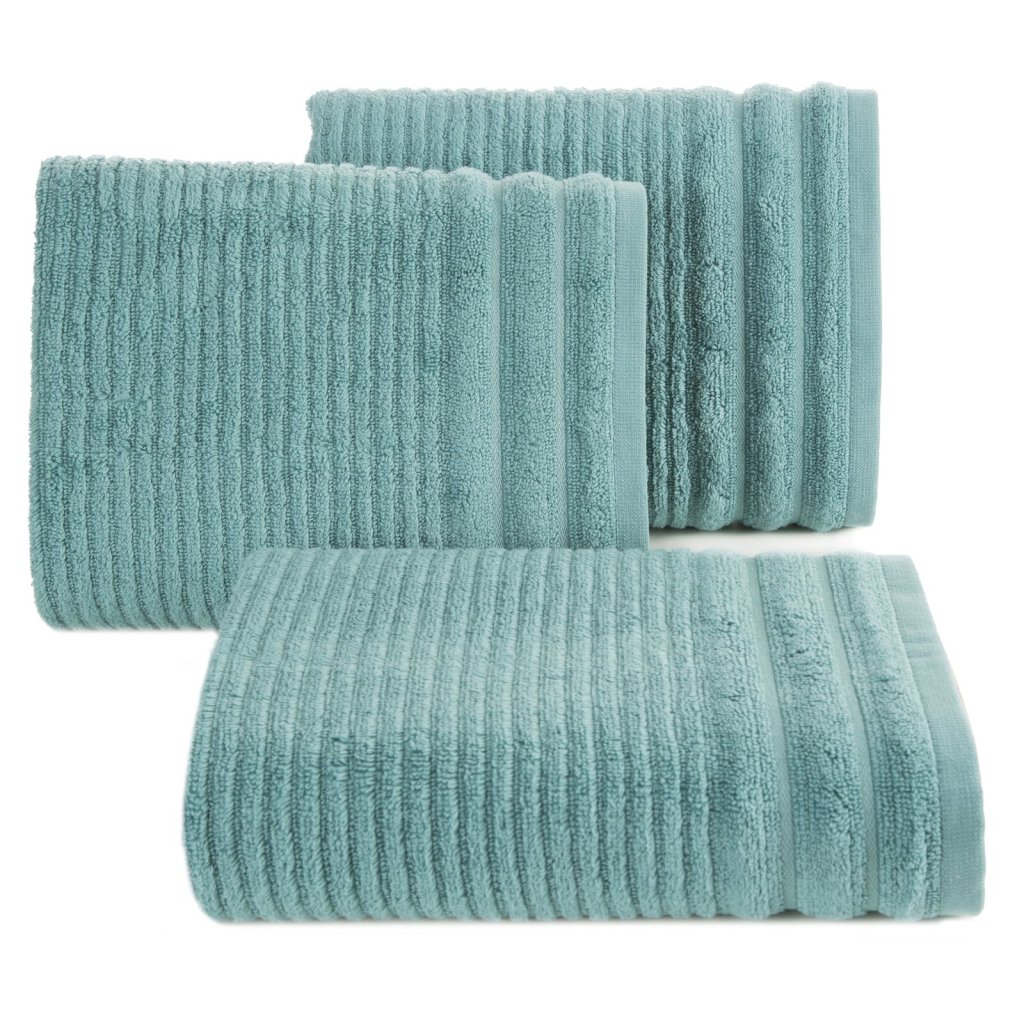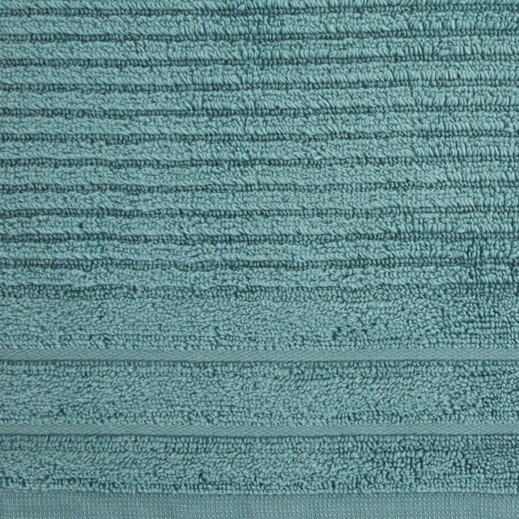 Ručník z měkké a savé bavlněné tkaniny s froté vazbou, zdobený barevným lemem ve stylu bastingu. Šířka: 30 cm, délka: 50 cm, barva: mátová, gramáž: 400 GSM, složení: 100% bavlna.Doplňkové parametry