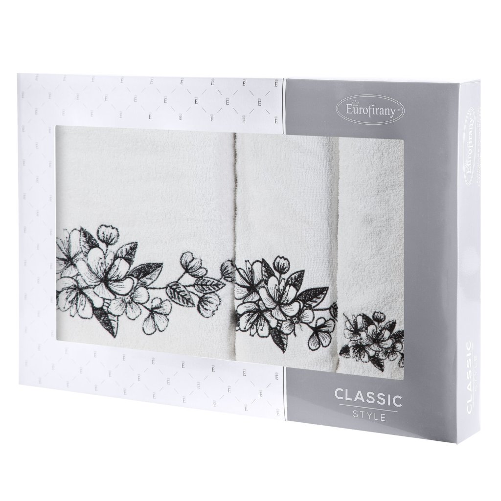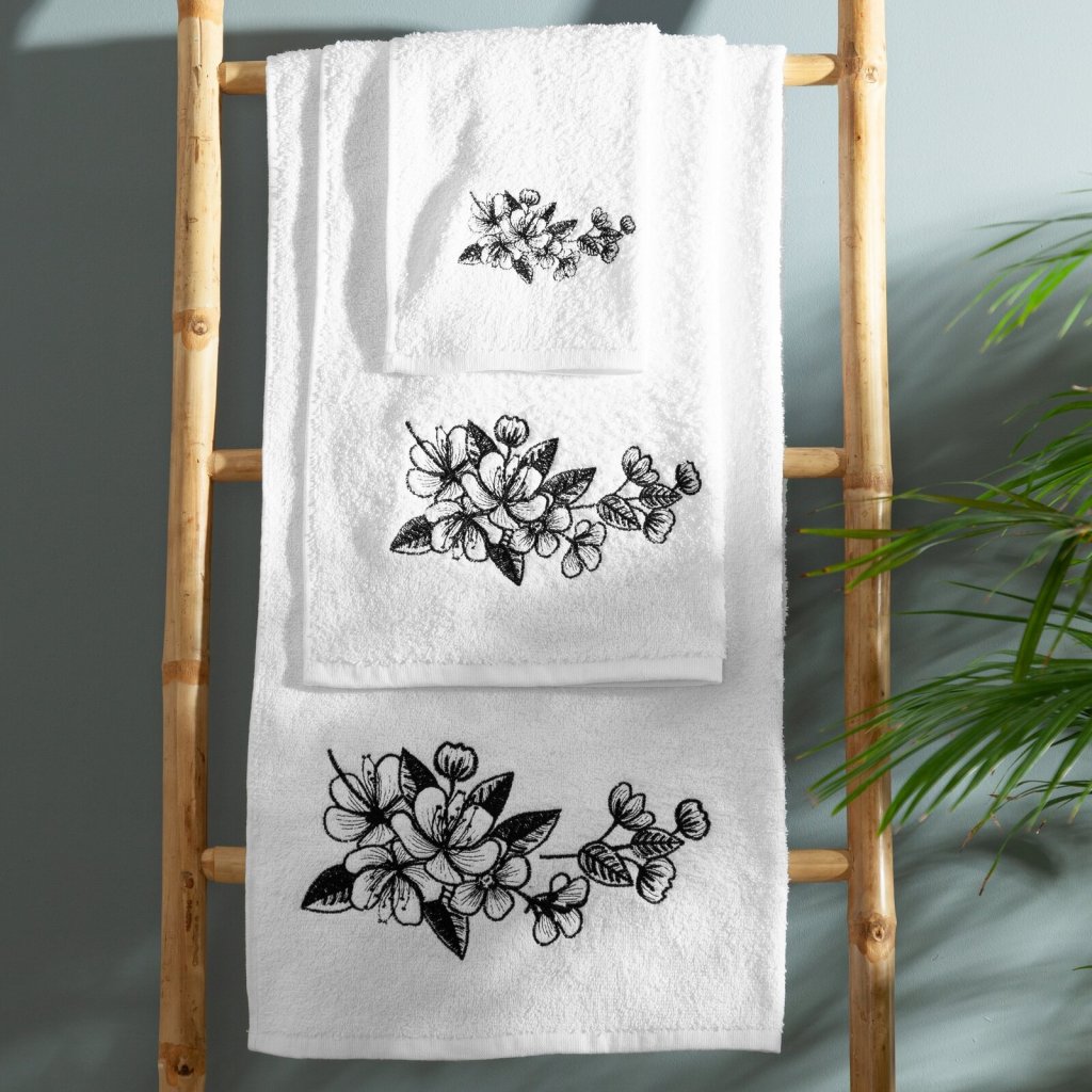Elegantní sada ručníků MOLI s jemnou výšivkou třešňových květů je ideální volbou. Je vyrobena ze 100% bavlněného froté s certifikací OEKO-TEX® Standard 100. Ručníky vynikají měkkostí a vysokou savostí. Jemná výšivka a estetické balení v kartonové krabici činí z této sady originální dárek. Sada obsahuje 3 ks ručníků o rozměrech: 70x140 cm - 1 ks, 50x90 cm - 1 ks, 30x50 cm - 1 ks , barva: bílá, gramáž: 400 GSM, složení: 100% bavlna.Doplňkové parametry