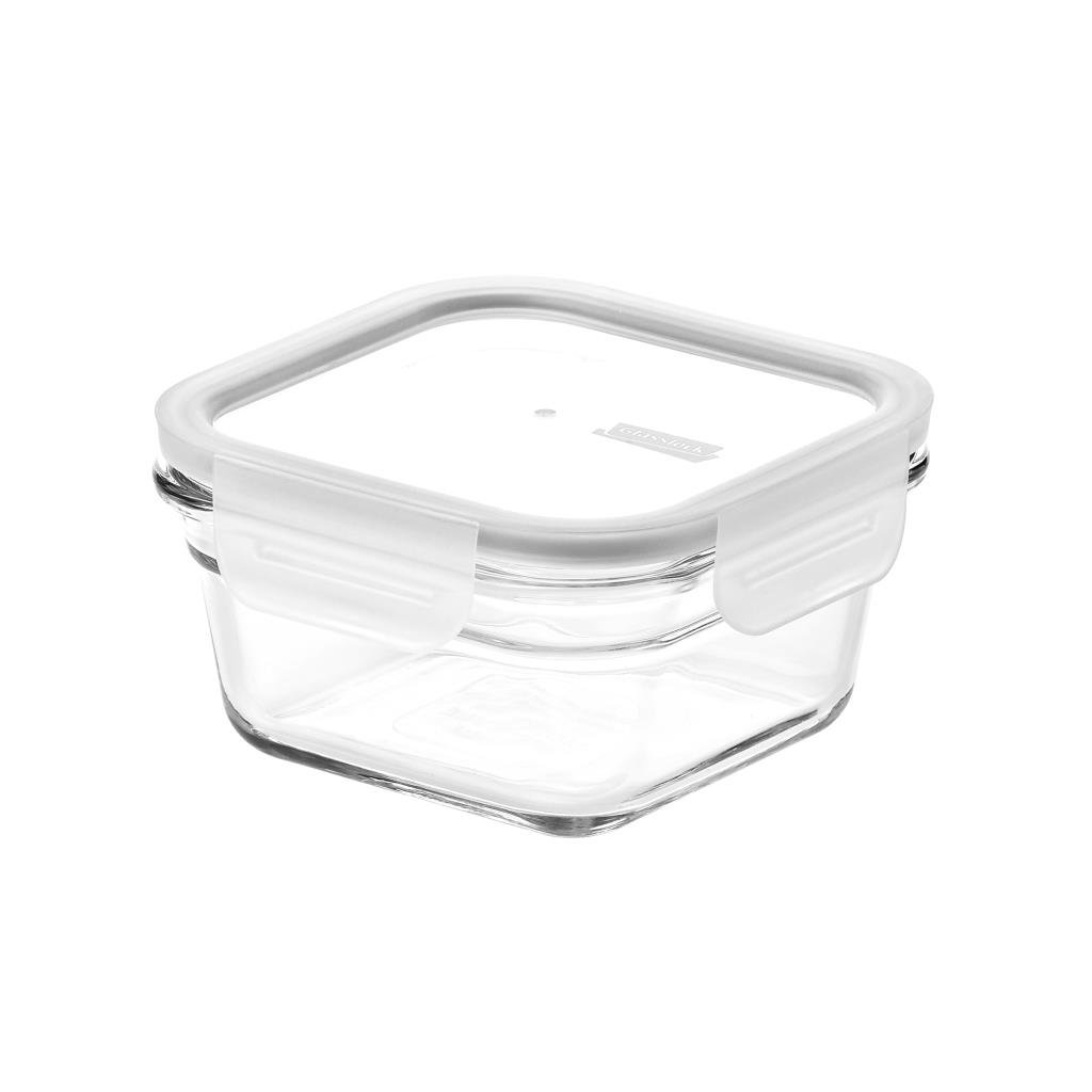 Čtvercová skleněná nádoba s plastovým nacvakávacím víkem a bílým těsněním je vyrobena z vysoce kvalitního tvrzeného skla. Speciální silikonové těsnění zajišťuje naprostou vzduchotěsnost a udržuje vůně potravin uvnitř nádoby. Omezené množství kyslíku v uzavřené nádobě znamená, že skladovaný produkt zůstane mnohem déle čerstvý. Skleněná nádoba slouží především ke skladování potravin (nádoby jsou navrženy tak, aby se hodily do každé kuchyně, a umožňují lepší organizaci - prázdné nádoby lze stohovat a plné stohovat) nebo jako svačinový box do práce - díky těsnění se polévka nebo omáčka nevylije např. při přenášení v tašce nebo při přepravě. Skleněná nádoba je šetrná k životnímu prostředí (recyklovatelná) a uživatelsky přívětivá (neobsahuje bisfenol A - BPA a estrogen). Skleněná nádoba je vhodná pro použití v troubě - na pečení, zapékání, dušení pokrmů (bez víka).Skleněná nádoba na uchovávání potravin a pečení v troubě, s plastovým průhledným víkem a bílým těsněním