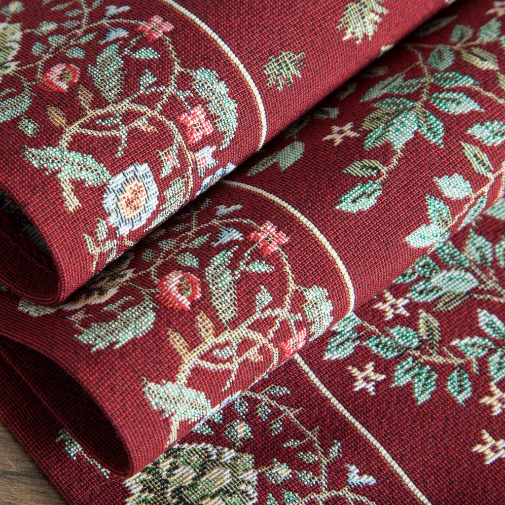 Vneste do svého domova rafinovanost s dekorativním gobelínovým běhounem Festive Verde v červené barvě. Bohatý vzor se stromem života a jemnými květinovými detaily působí tradičně a elegantně zároveň. Díky vysoké gramáži a kvalitnímu složení polyesteru a bavlny je běhoun odolný, rozměrově stálý a příjemný na dotek. Šířka: 40 cm, délka: 100 cm, barva: vícebarevná, gramáž: 400 GSM, složení: 68 % polyester, 32 % bavlna.Doplňkové parametry