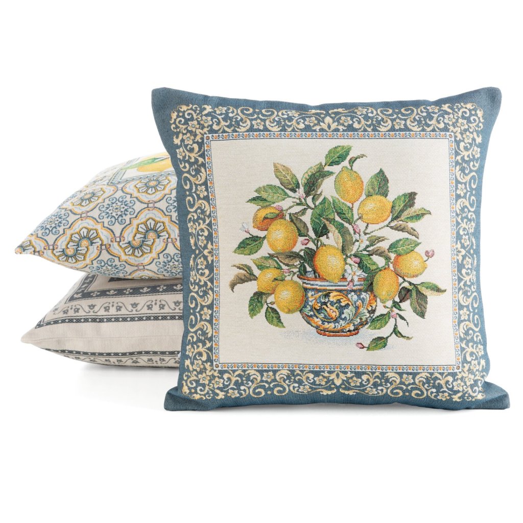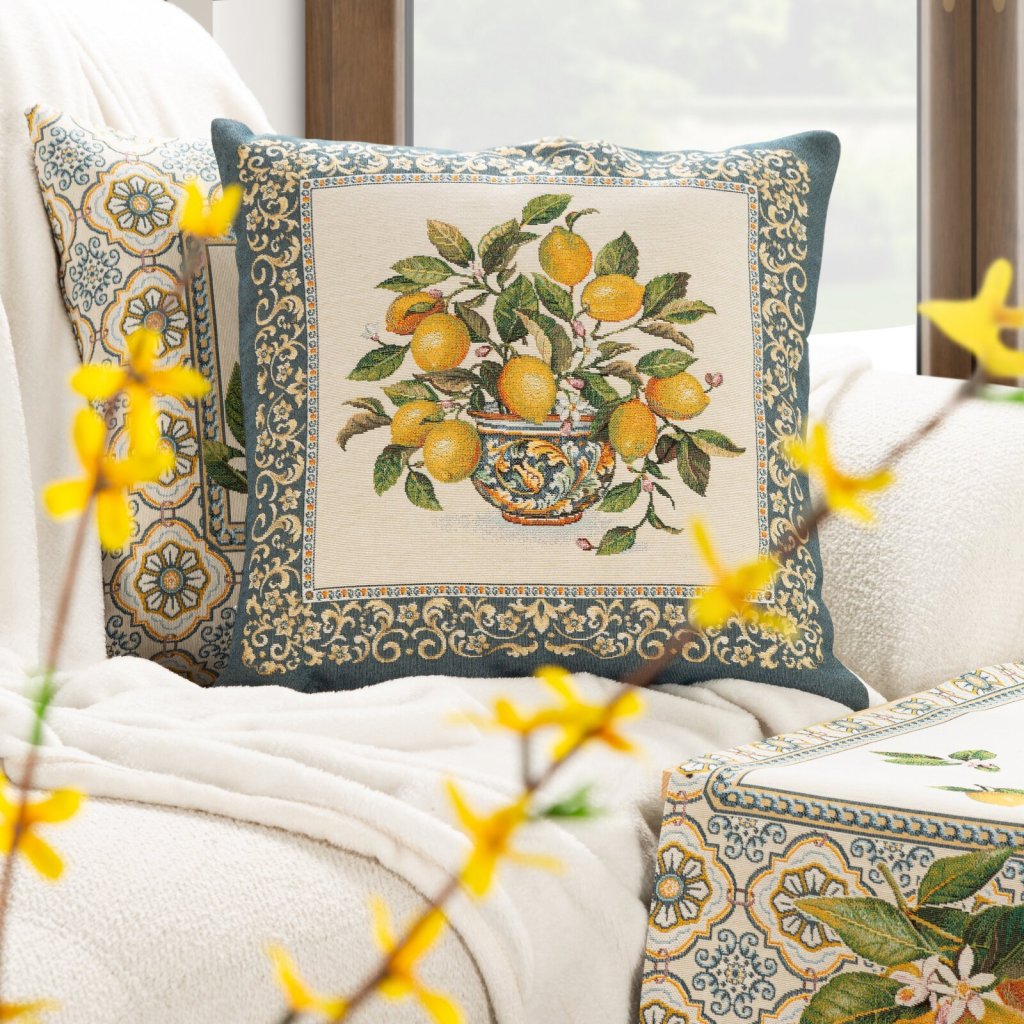 GOBELÍNOVÝ DEKORAČNÍ POVLAK NA POLŠTÁŘ LEMON 45X45 CM VZOROVANÁ