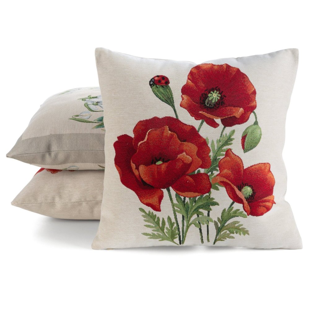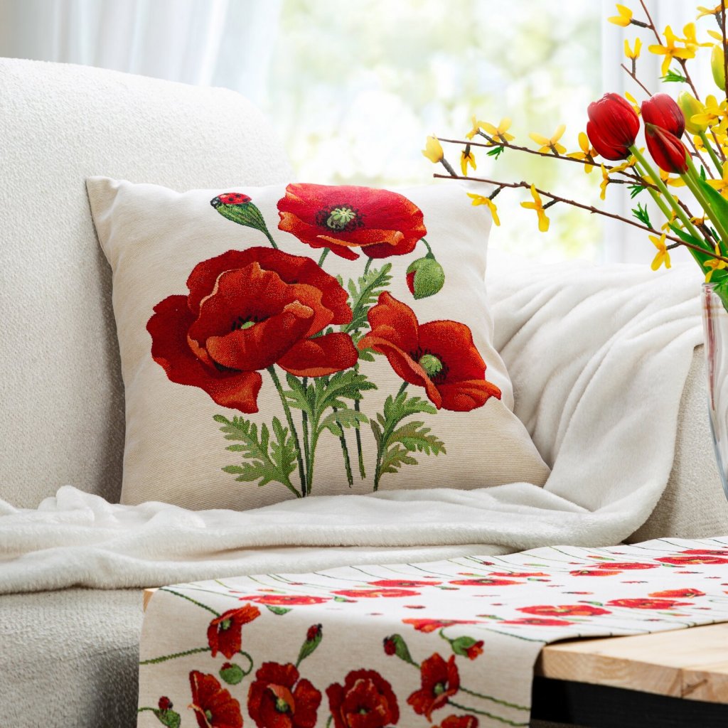GOBELÍNOVÝ DEKORAČNÍ POVLAK NA POLŠTÁŘ PAPAVER 45X45 CM KVĚTY