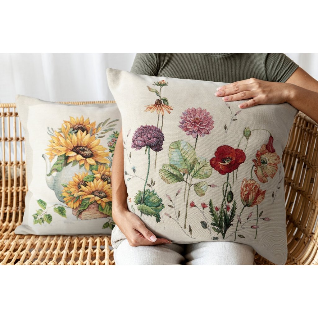 Gobelínový povlak na polštář, šířka: 45 cm, délka: 45 cm, barva: vícebarevná, složení: 75 % polyester, 22 % bavlna, 3 % akryl.Doplňkové parametry