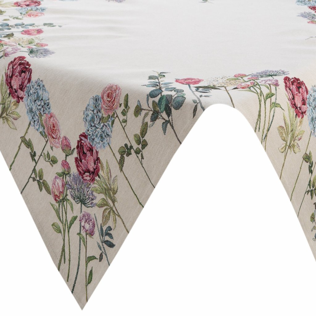 Gobelínový ubrus s květinovým vzorem, šířka: 100 cm, délka: 100 cm, barva: vícebarevná, hmotnost: 410 GSM, složení: 75 % polyester, 22 % bavlna, 3 % akryl.Doplňkové parametry