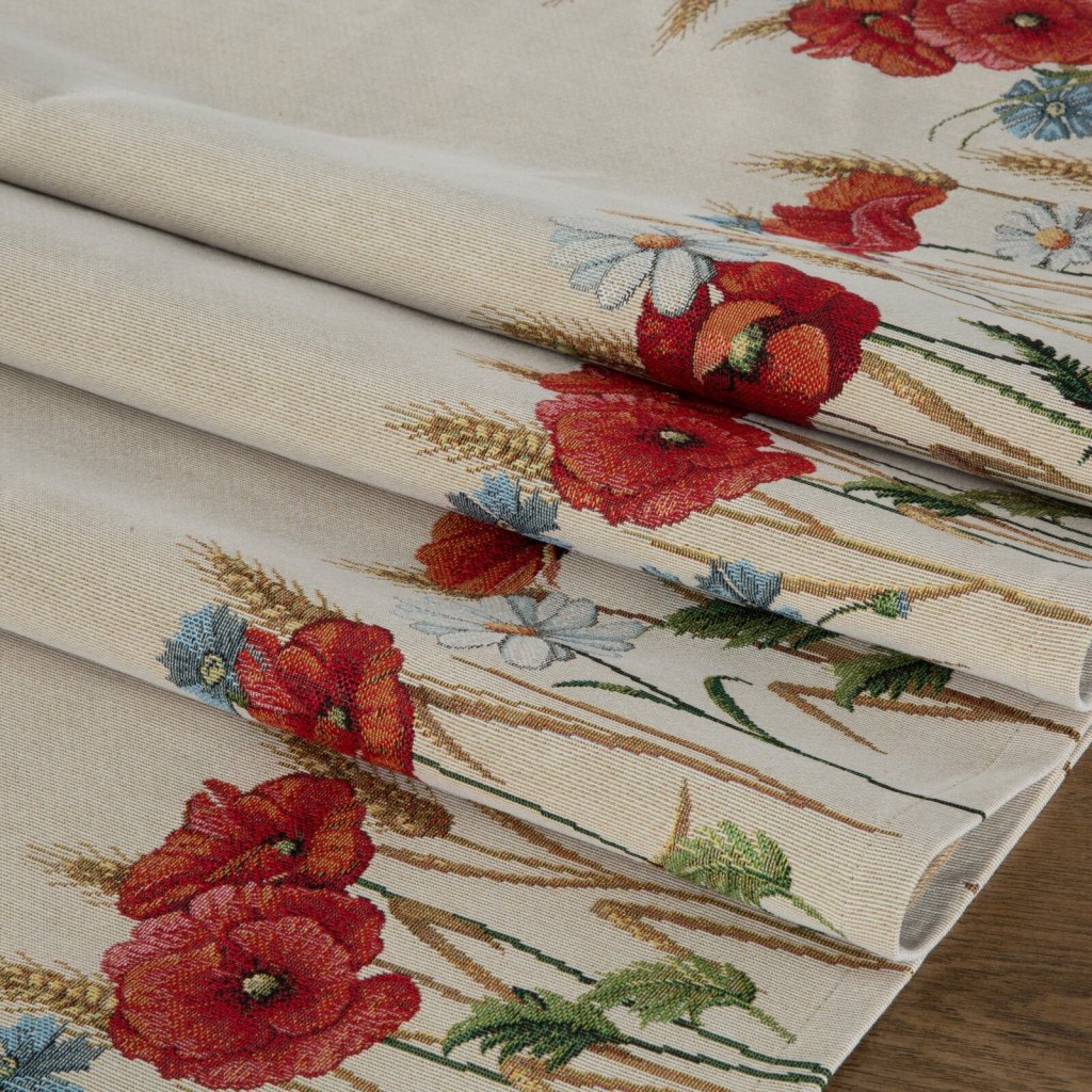 Gobelínový ubrus s květinovým vzorem, šířka: 140 cm, délka: 180 cm, barva: vícebarevná, hmotnost: 410 GSM, složení: 75 % polyester, 22 % bavlna, 3 % akryl.Doplňkové parametry