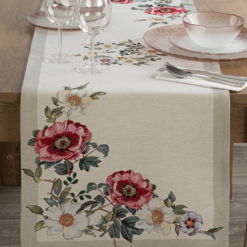 GOBELÍNOVÝ UBRUS NATUR 45X140 CM KVĚTY