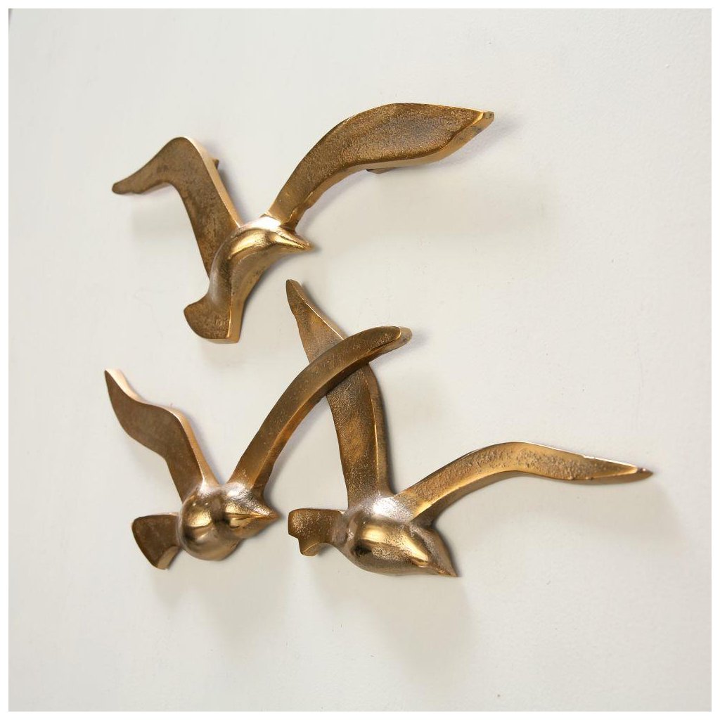 Hliníková dekorace na zeď Gold Birds 13x35 cm + 12x40 cm
