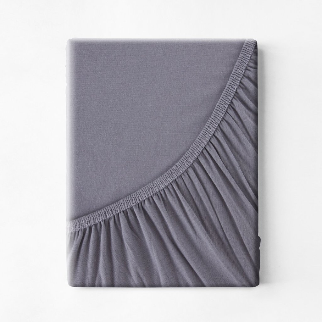 Bavlněné jersey prostěradlo s gumou, šířka: 140 cm, délka: 200 cm, výška: 30 cm, barva: tmavě šedá, gramáž: 140 GSM, složení: 100% bavlna.Doplňkové parametry