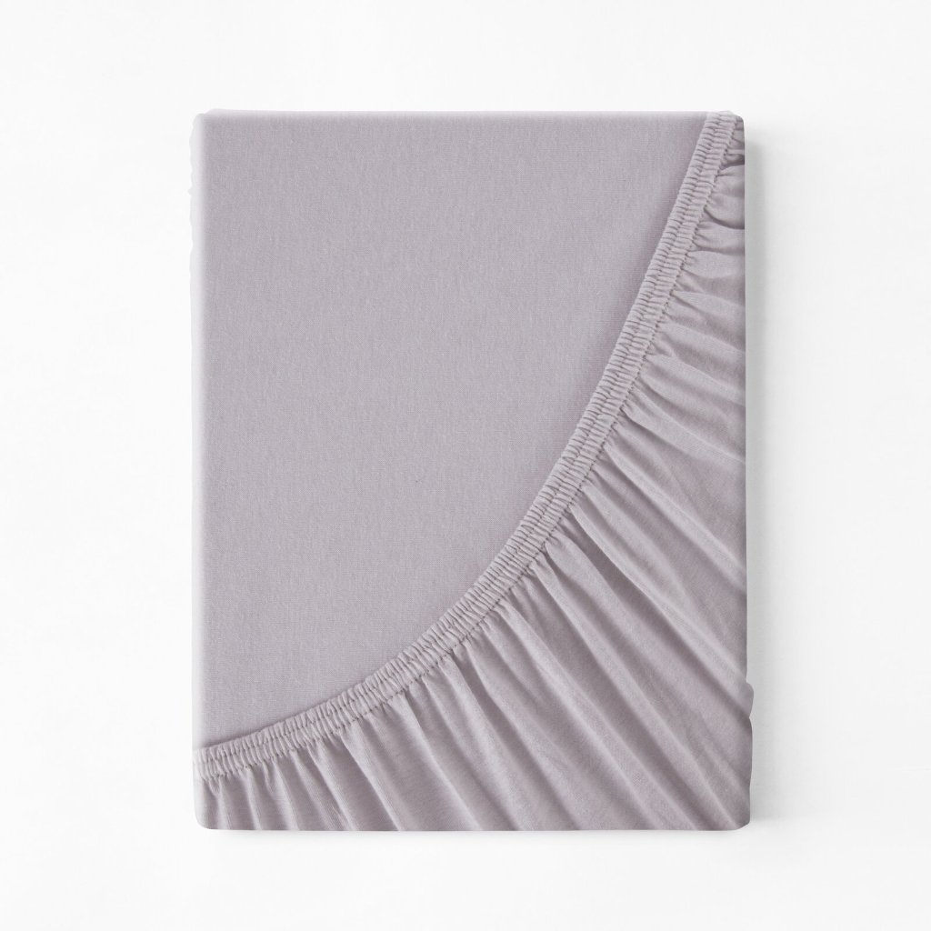 Bavlněné jersey prostěradlo s gumou, šířka: 220 cm, délka: 200 cm, výška: 30 cm, barva: světle šedá, hmotnost: 140 GSM, složení: 100% bavlna.Doplňkové parametry