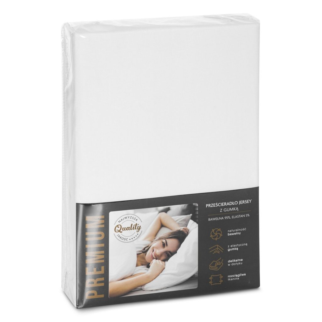 Bavlněné žerzejové prostěradlo s gumou, šířka: 120 cm, délka: 200 cm, výška: 25 cm, barva: krémová, hmotnost: 190 GSM, složení: 95 % bavlna, 5 % elastan.Doplňkové parametry