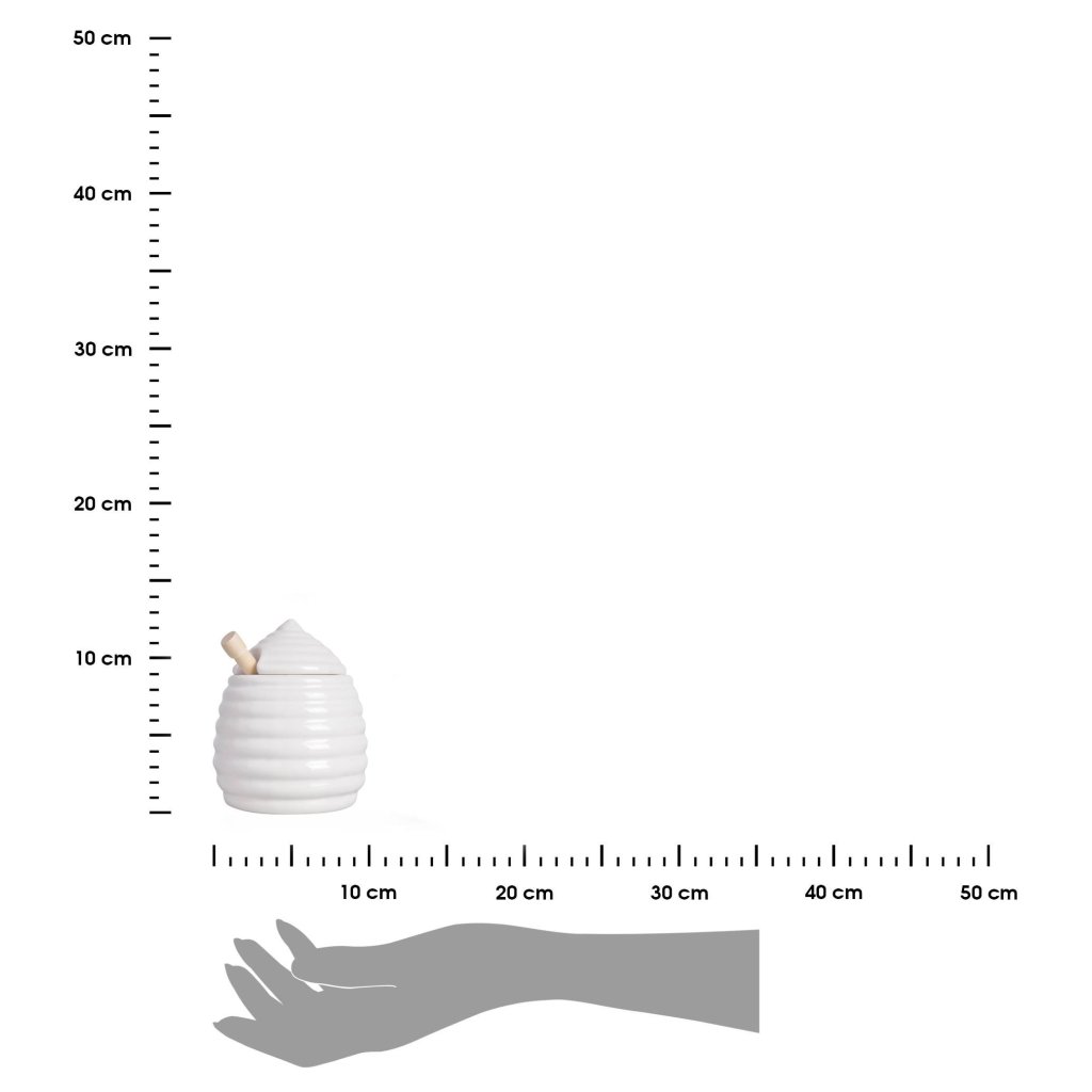 Elegantní a esteticky vyrobená nádoba na med, která potěší každého milovníka této sladké speciality. Bílá nádoba vypadá jako úl, má šikovné víko a lžičku z javorového dřeva. Je to nejen praktická ale také dekorativní nádoba. Slouží ke skladování, pohodlnému podávání a zajímavé prezentaci medu. Ozdobí kuchyňskou linku, poličku či stůl při rodinné snídani.Naběračka v soupravě se jistě osvědčí při nanášení medu na chlebíčky, palačinky nebo čaje.
