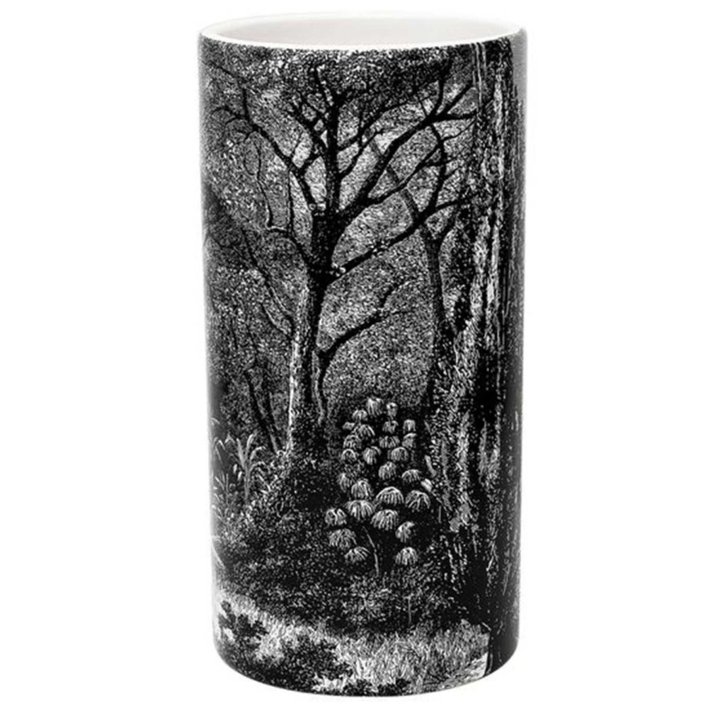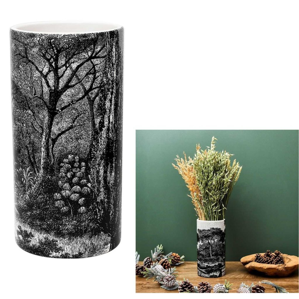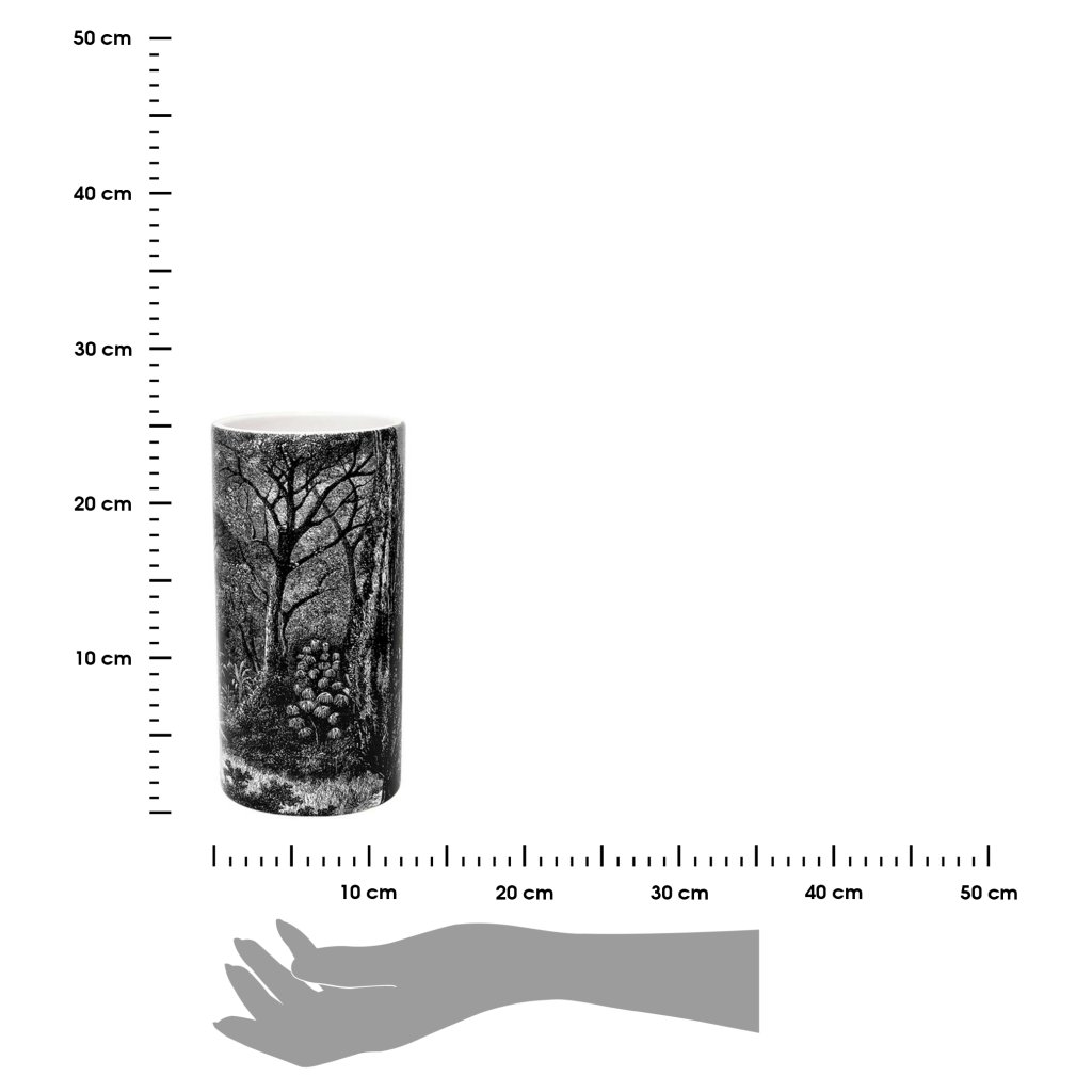 Keramická váza Forest Noir o rozměrech 25×12,8×12,8 cm je dekorativní solitér , který vnese do tvého interiéru atmosféru tajemného lesa v elegantním, černo-bílém provedení. Vyrobená z kvalitního dolomitu, zaujme precizním potiskem s motivem lesní krajiny , který evokuje klid, hloubku a umělecký výraz.