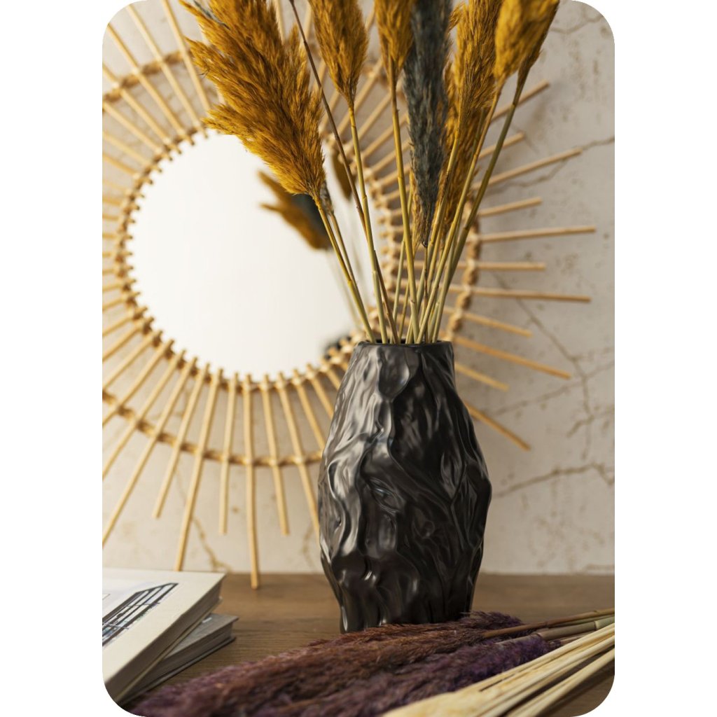 Elegantní černá keramická váza je skvělým doplňkem, který dobře poslouží k vystavení živých a umělých květin a vytvoří jemný akcent ve vašem interiéru. Svým nepravidelným tvarem se skvěle hodí do moderních místností a dodává jim charakter a šik. Váza Louis osloví fanoušky nevšedního designu a loftové estetiky. Originalita vázy působí působivě v každém interiéru, s rostlinami i bez nich.Buďte první, kdo napíše příspěvek k této položce.