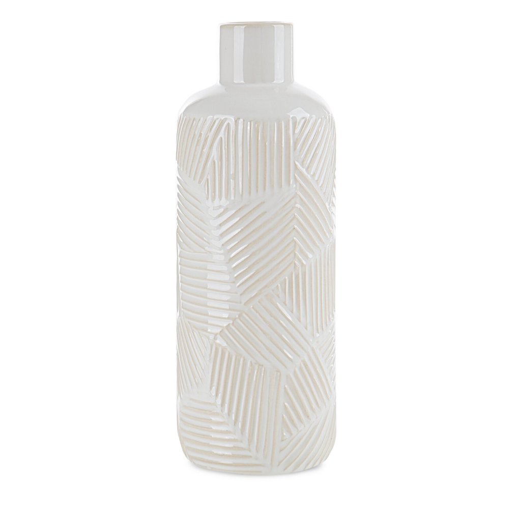 Elegantní dekorativní váza ROMINA z vysoce kvalitní keramické hlíny je jedinečným designovým prvkem, který podtrhne charakter každého interiéru. Udržovaná v přírodním tónu potěší jemností svého tvaru a dekorativním reliéfním vzorem, který jí dodává styl a umělecký výraz. Šířka: 12 cm, délka: 33 cm, barva: krémová, složení: keramická hlína.Doplňkové parametry