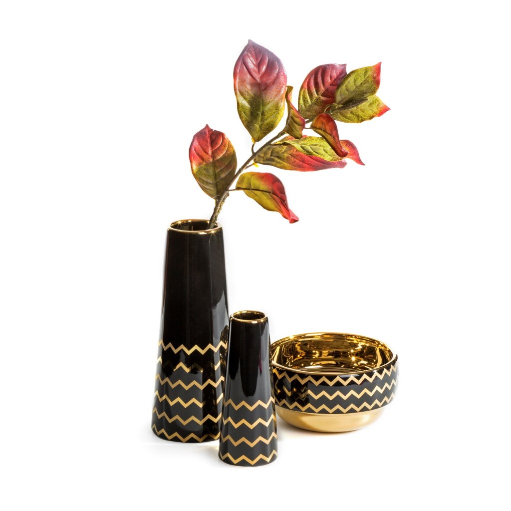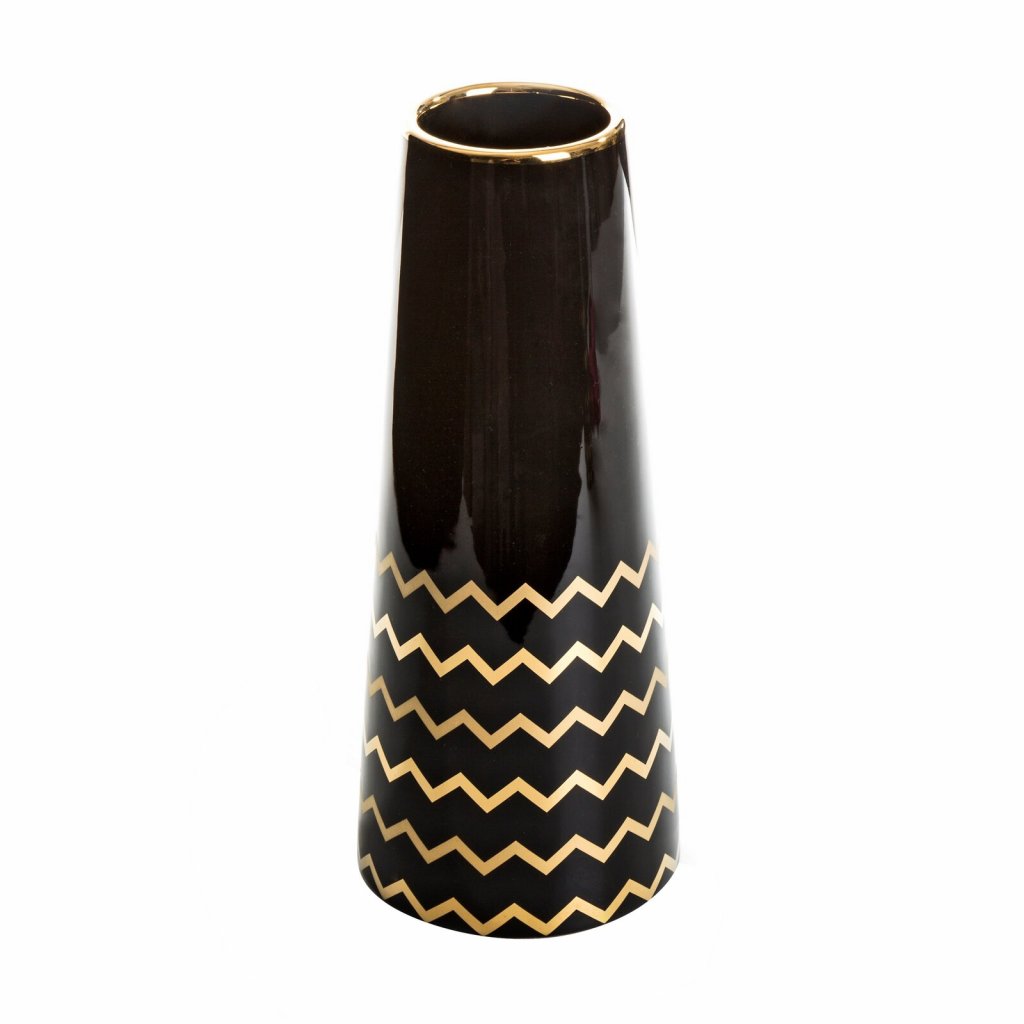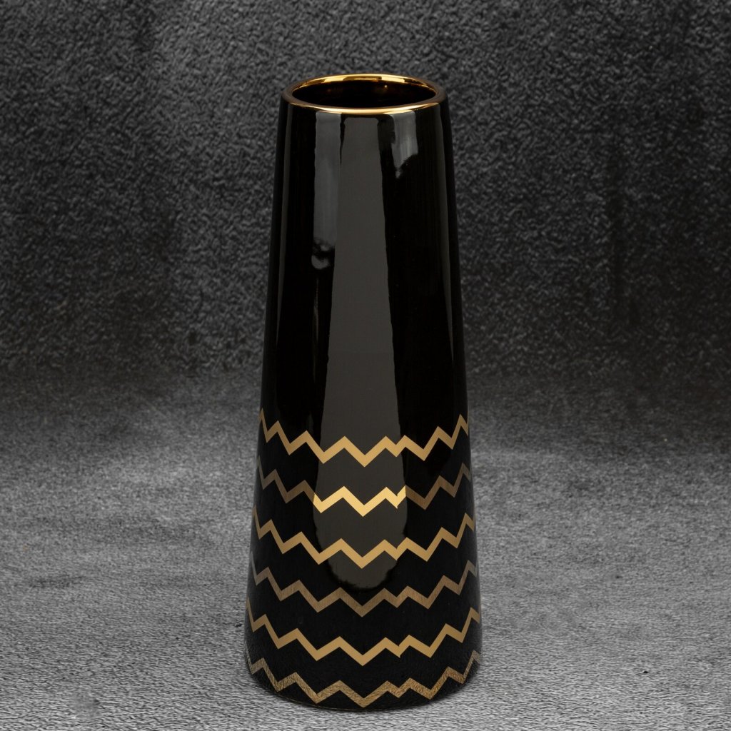 Dekorativní váza šířka: (fi) 12 cm, délka: 30 cm, barva: černá/zlatá, složení: keramická hlínaDoplňkové parametry