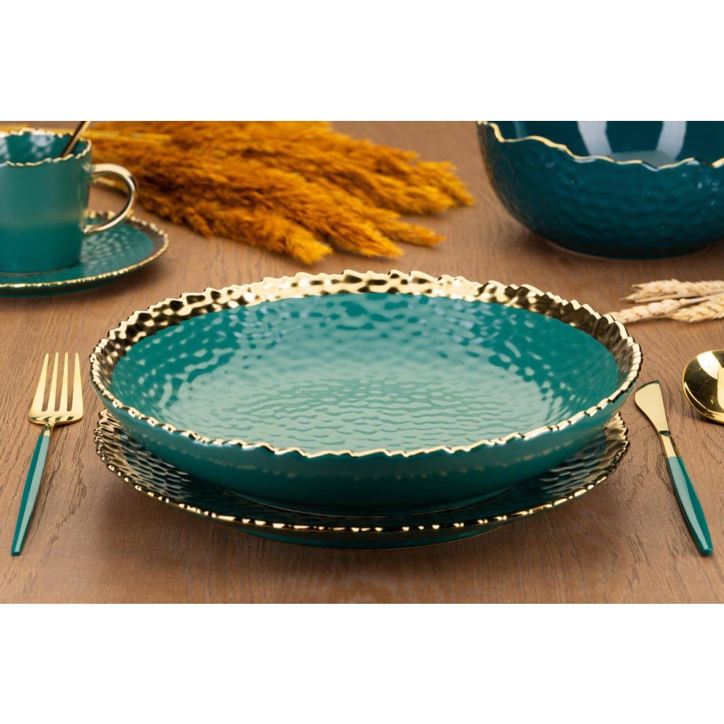 Hluboký talíř v glamour stylu se zubatými okraji je vyroben z keramiky a charakteristické okraje jsou pokryty zlatým povlakem, který talíři dodává jedinečné kouzlo. Jedinečný design zapadne do glamour interiérů.Objem - 600 ml