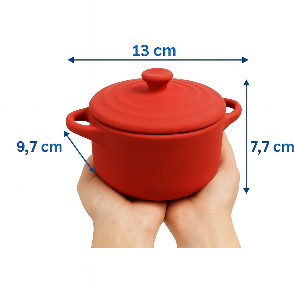 Keramický hrnec Mini Red o průměru 13 cm (včetně držadel) je praktickým řešením pro zapékání, pečení i servírování přímo z trouby . Vyrobený z odolné kameniny , která rovnoměrně rozvádí a zadržuje teplo , umožňuje přípravu jídel s dokonalým výsledkem.