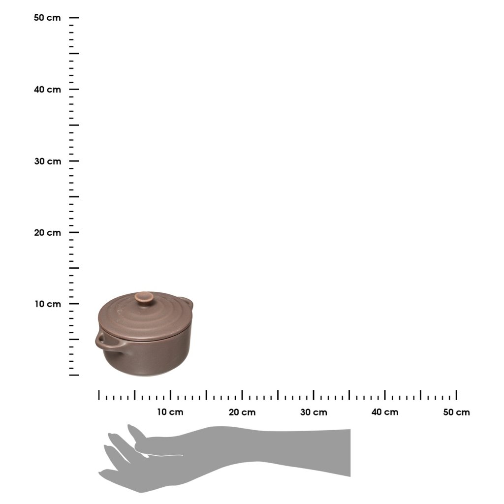 Kameninový hrnec vhodný do trouby je jedinečným prvkem každé kuchyně, dokonale se hodí k pečení, gratinování a dušení jídel. Vyrobeno z odolné kameniny dokonale rozvádí a udržuje teplo, což umožňuje rovnoměrné pečení a dlouhodobé udržení teploty po vyjmutí z trouby. Elegantní, matný taupe povrch mu dodává moderní a klasický charakter, díky čemuž bude vypadat skvěle na každém stole. Vybaven pohodlnými rukojeťmi a odpovídajícím víkem je mimořádně praktický a stylový. Miska je ideální pro přípravu jídel i pro podávání pokrmů přímo z trouby.Rozměr: 13x7,5 cm