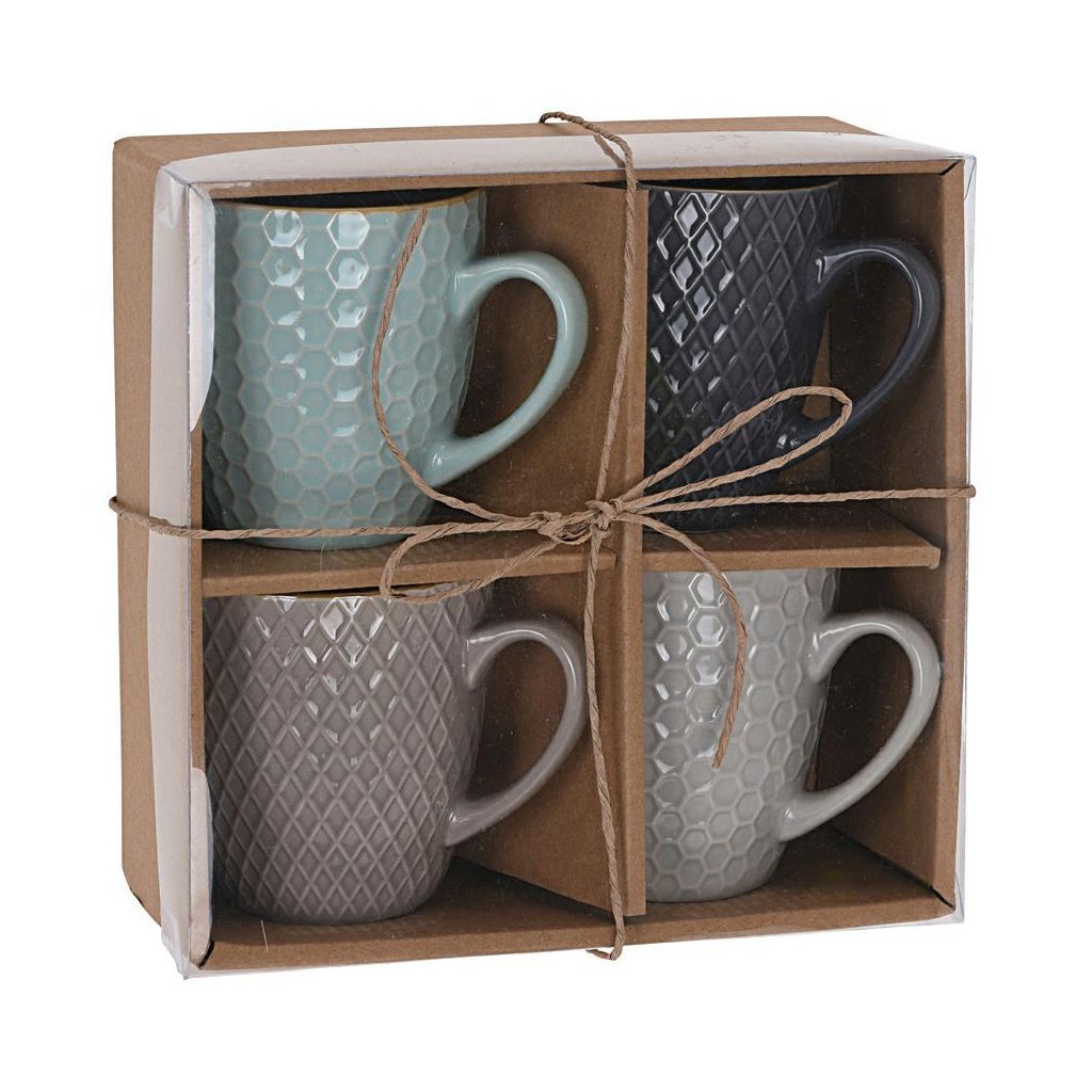 Sada 4 hrníčků v pastelových barvách na kávu nebo čaj. Zabalené v krabičce jsou vhodné jako dárek. Hrníčky lze mýt v myčce nádobí a lze je používat v mikrovlnných troubách.Doplňkové parametry