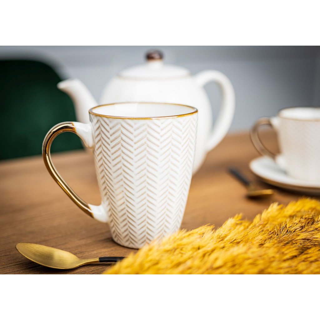 Elegantní hrnek na kávu nebo čaj, který se vyznačuje nejen keramickým zpracováním, ale také zajímavým designem. Hrnek je vhodný jako dárek. Lze jej používat v mikrovlnné troubě a myčce na nádobí.Doplňkové parametry