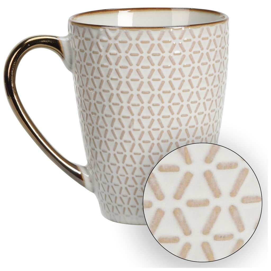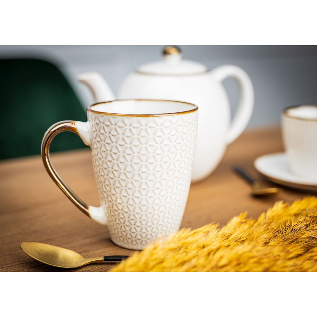 Elegantní hrnek na kávu nebo čaj, který se vyznačuje nejen keramickým zpracováním, ale také zajímavým designem. Hrnek je vhodný jako dárek. Lze jej používat v mikrovlnné troubě a myčce na nádobí.Doplňkové parametry