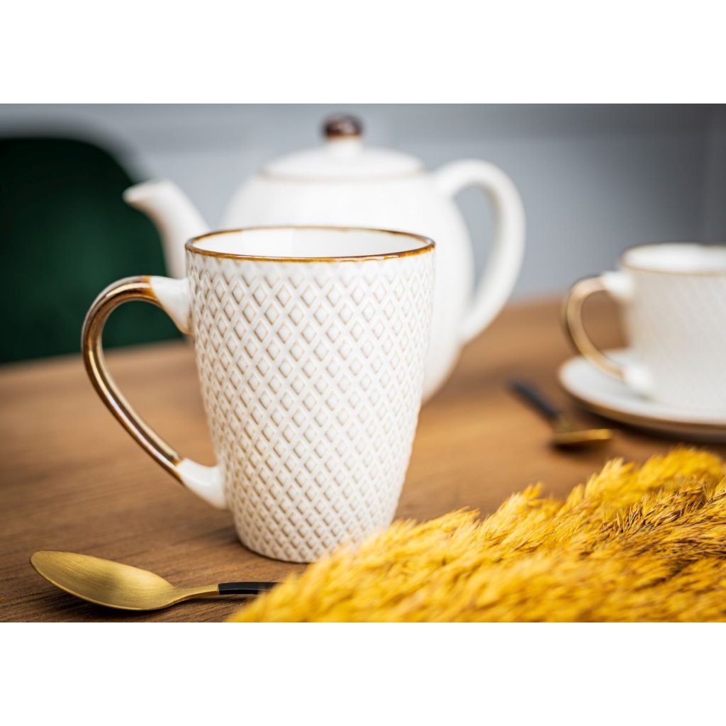 Elegantní hrnek na kávu nebo čaj, který se vyznačuje nejen keramickým zpracováním, ale také zajímavým designem. Hrnek je vhodný jako dárek. Lze jej používat v mikrovlnné troubě a myčce na nádobí.Doplňkové parametry