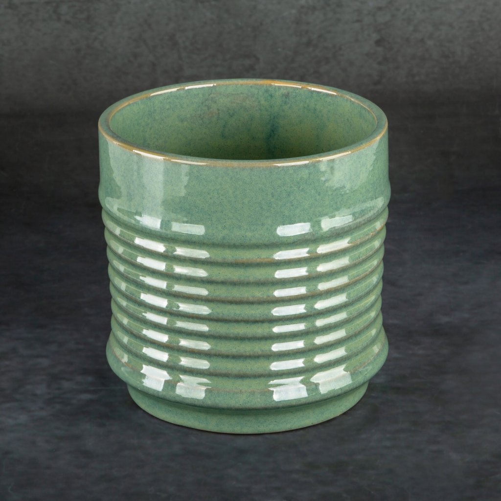 Dekorativní květináč, šířka: (fi) 17 cm, délka: 17 cm, barva: zelená, složení: keramická hlína.Doplňkové parametry