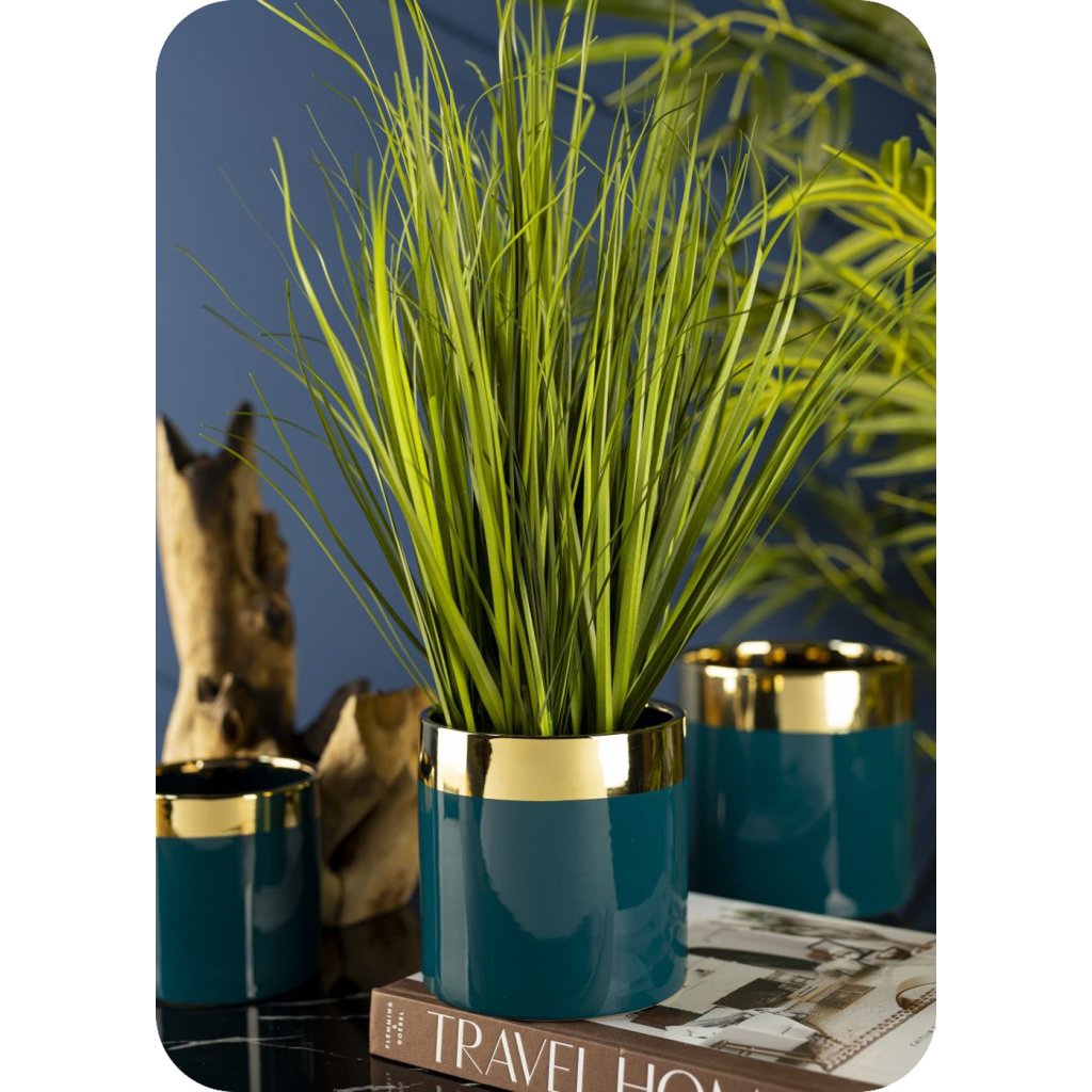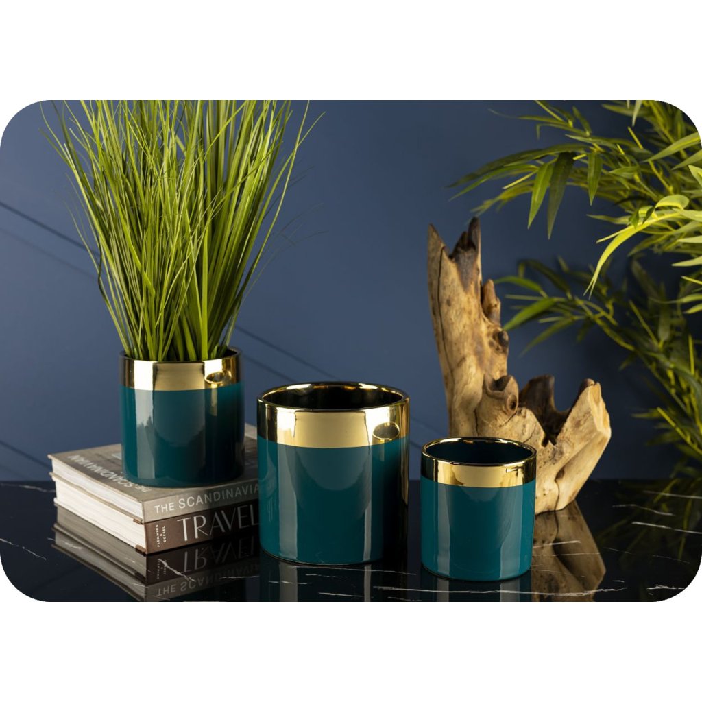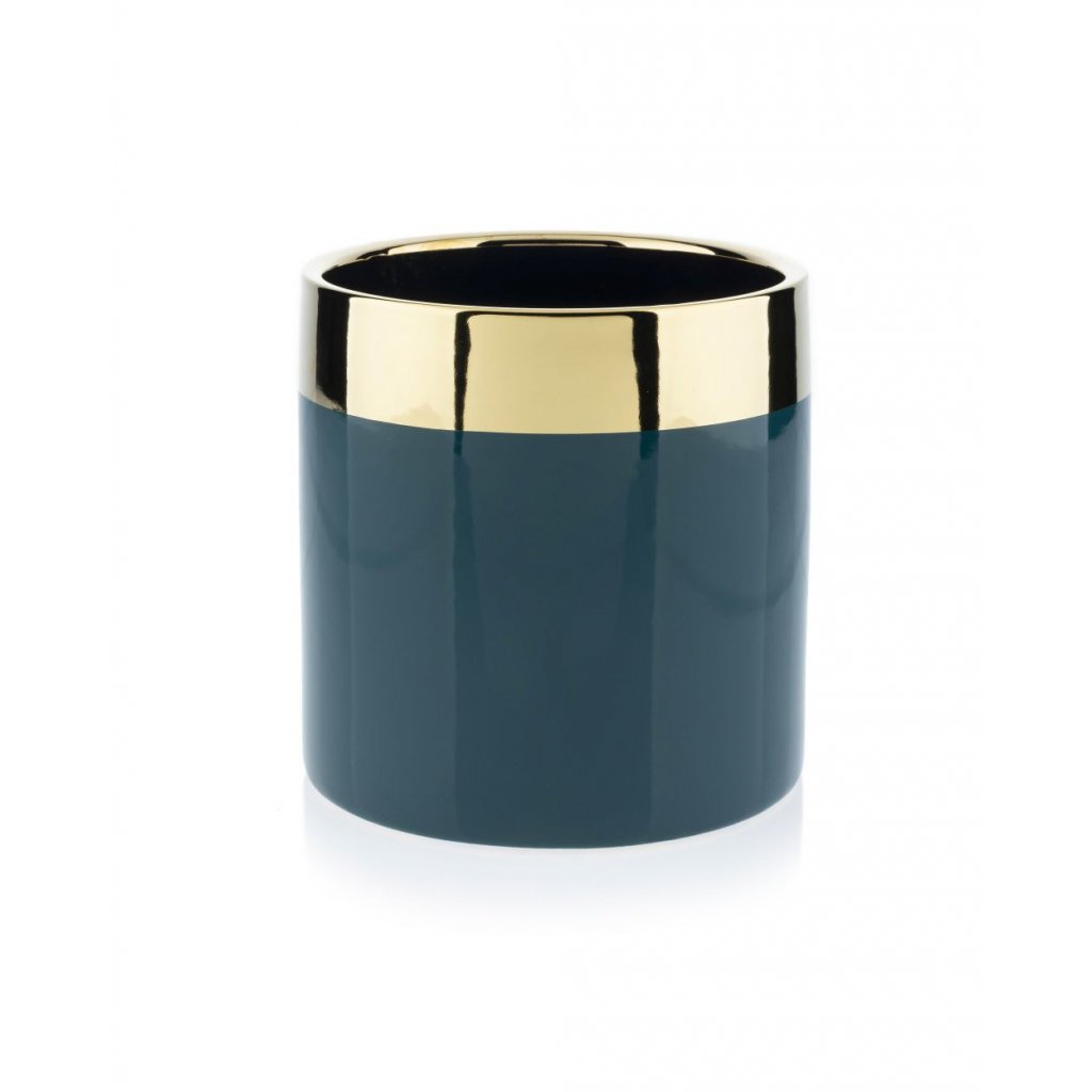 KERAMICKÝ KVĚTINÁČ CINDY 11X11 CM ZMAVOZELENÁ/ZLATÁ