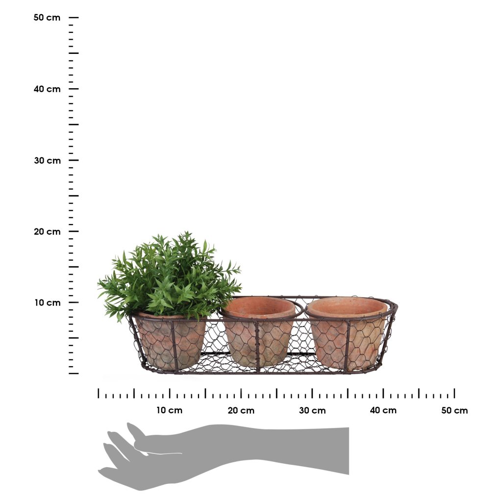 Květináč, který zaujme svým designem a praktičností. Jeho moderní styl z něj činí krásnou dekoraci ideální do každého interiéru v domácnosti. Design dokonale ladí se zelenými rostlinami, které spolu vytvářejí harmonii estetiky a funkčnosti.Produkt se pyšní odolností při které konstrukce zajišťuje bezpečnost rostlin. Květináč je vyroben z keramiky a je vsazen do drátěného koše, nepraská, nedeformuje se a je vhodný prakticky pro všechny druhy rostlin.