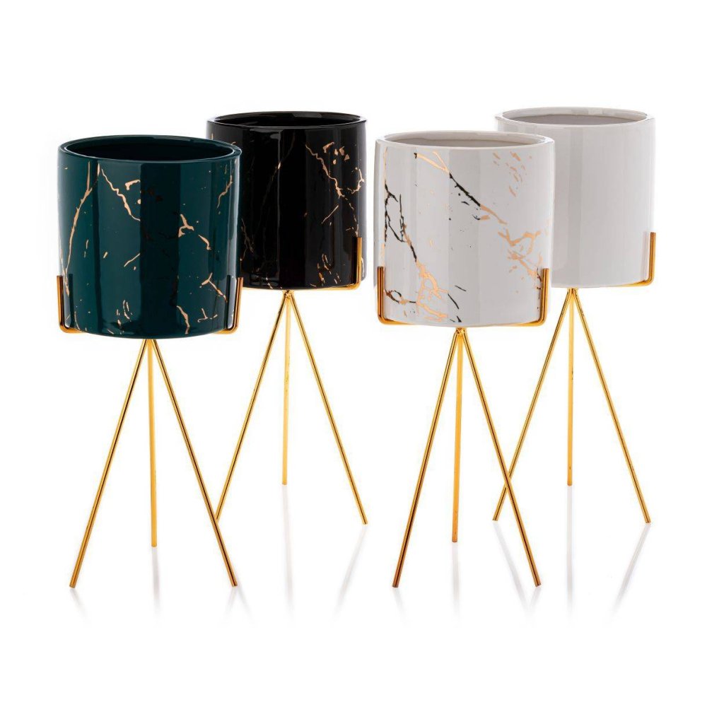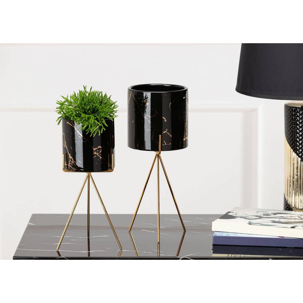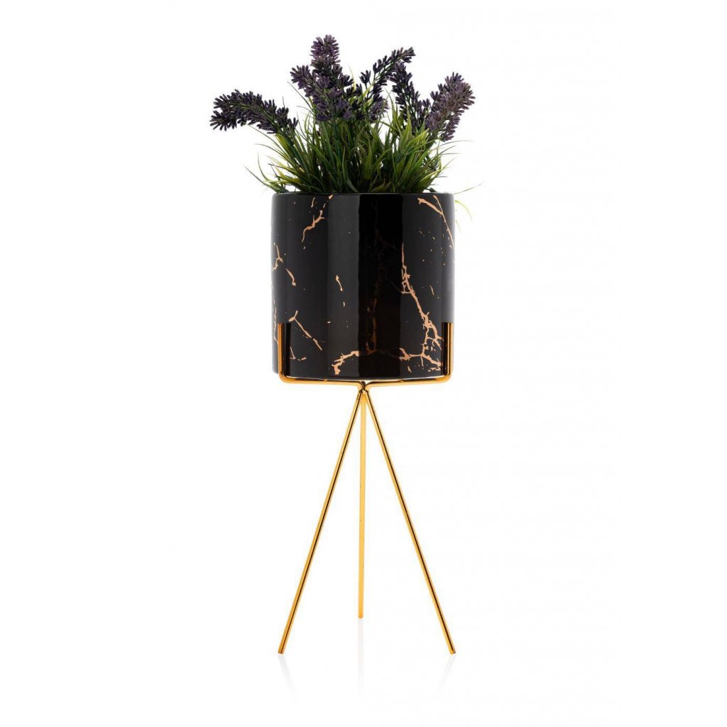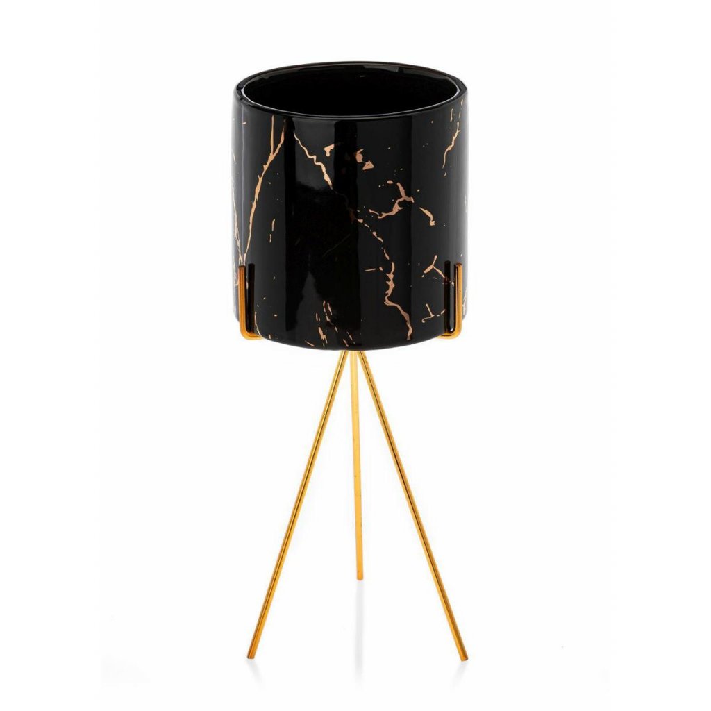 Květináč s elegantním kovovým stojanem, který zaujme svým designem a praktičností. Jeho moderní styl z něj činí krásnou dekoraci ideální do každého interiéru v domácnosti. Design dokonale ladí se zelenými rostlinami, které spolu vytvářejí harmonii estetiky a funkčnosti. Díky kovovému stojanu květináč působí noblesním dojmem.Produkt se pyšní odolností při které konstrukce zajišťuje bezpečnost rostlin. Květináč je vyroben z keramiky, nepraská, nedeformuje se a je vhodný prakticky pro všechny druhy rostlin.