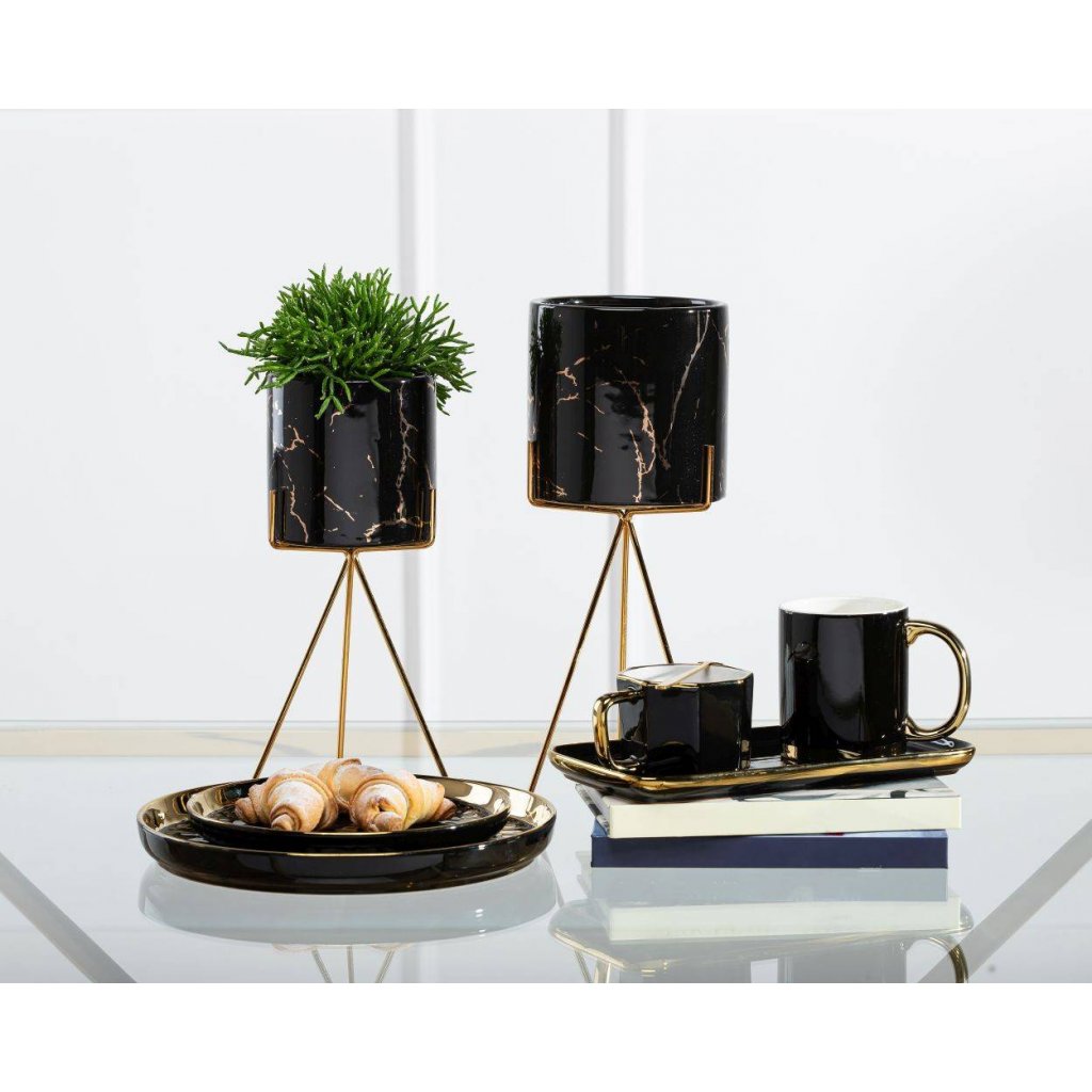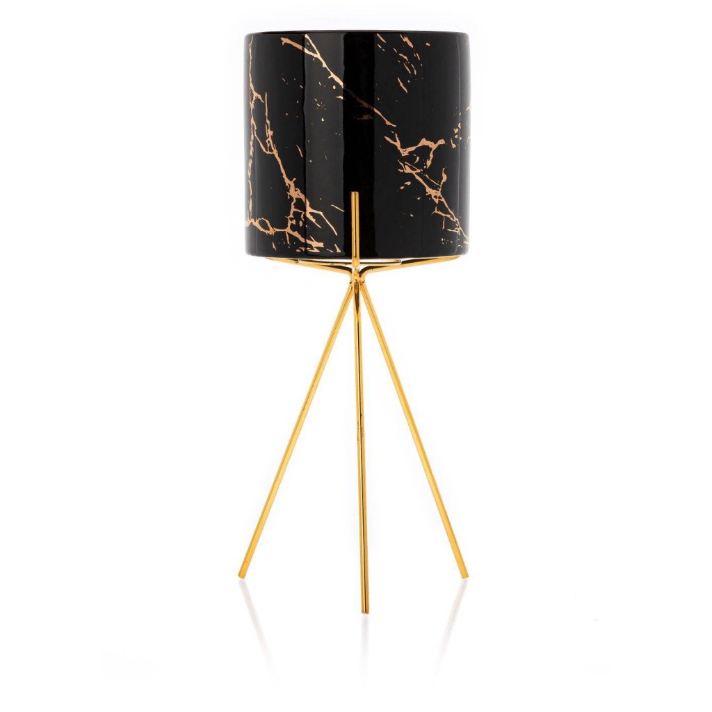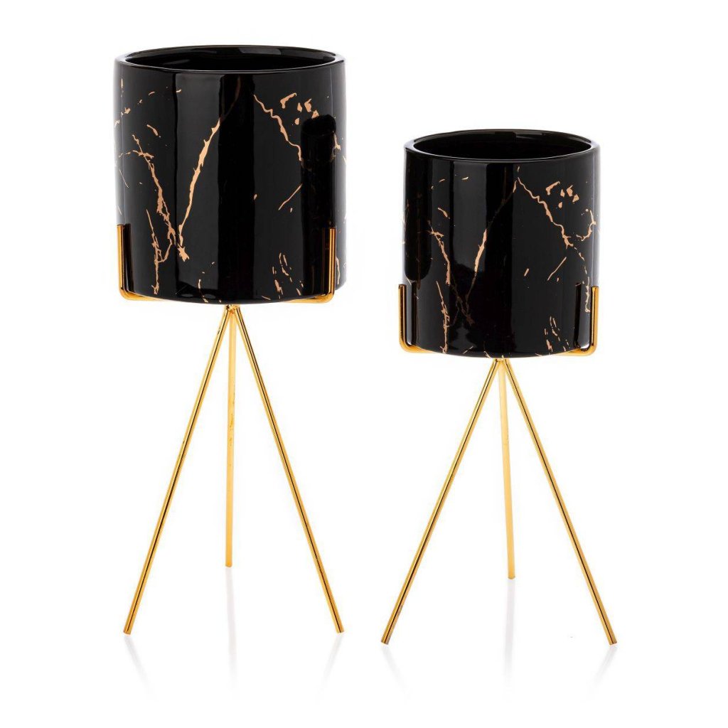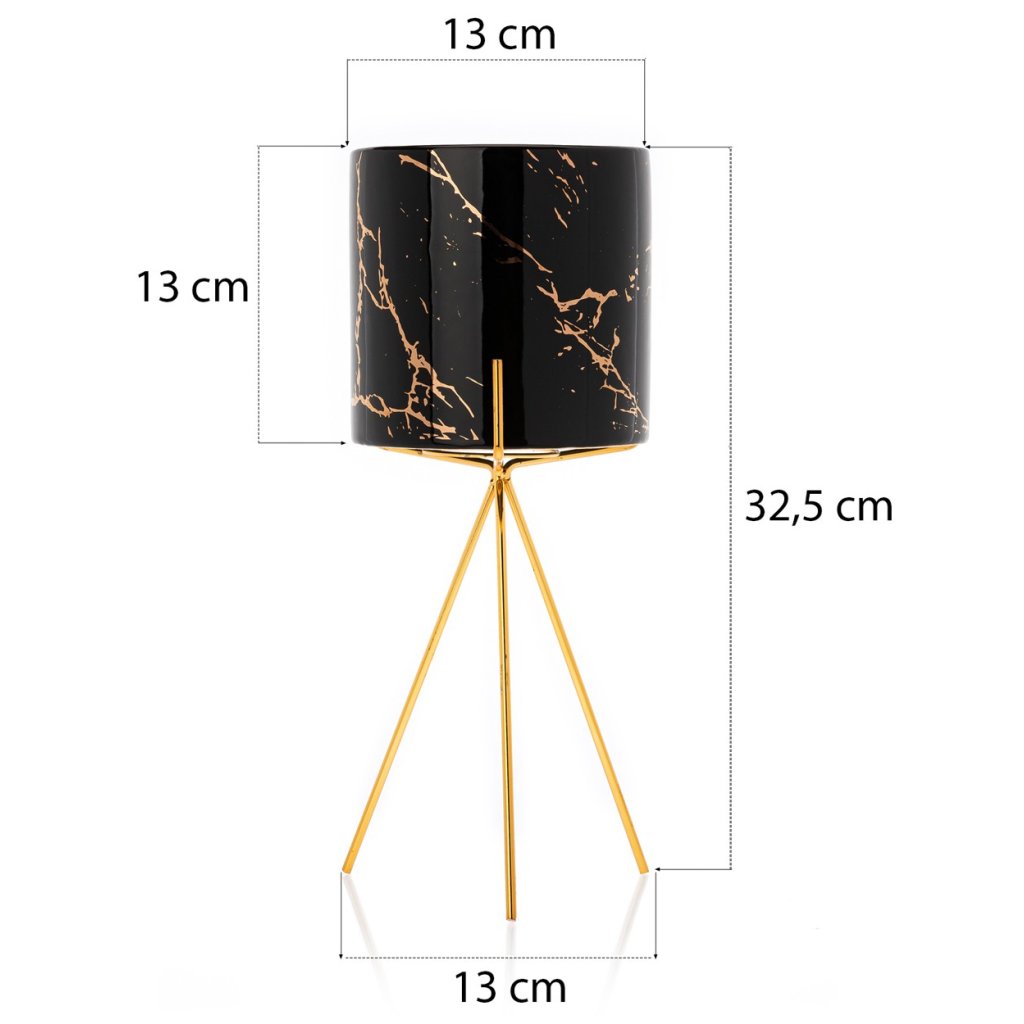 Květináč s elegantním kovovým stojanem, který zaujme svým designem a praktičností. Jeho moderní styl z něj činí krásnou dekoraci ideální do každého interiéru v domácnosti. Design dokonale ladí se zelenými rostlinami, které spolu vytvářejí harmonii estetiky a funkčnosti. Díky kovovému stojanu květináč působí noblesním dojmem.Produkt se pyšní odolností při které konstrukce zajišťuje bezpečnost rostlin. Květináč je vyroben z keramiky, nepraská, nedeformuje se a je vhodný prakticky pro všechny druhy rostlin.