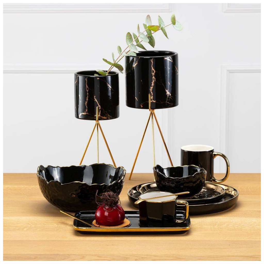 KERAMICKÝ KVĚTINÁČ SE STOJÁNEM EMMA 32X13 CM ČERNÁ