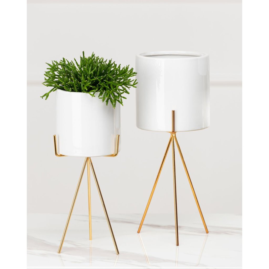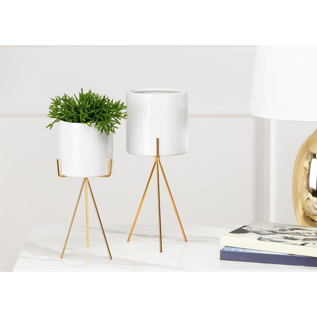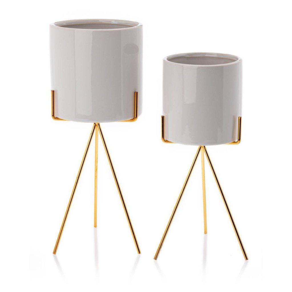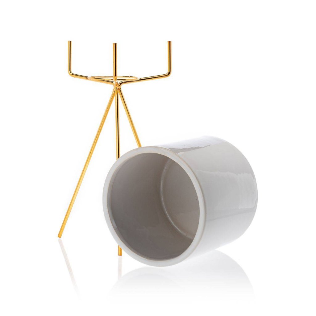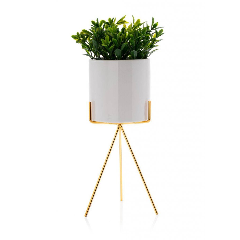 Květináč s elegantním kovovým stojanem, který zaujme svým designem a praktičností. Jeho moderní styl z něj činí krásnou dekoraci ideální do každého interiéru v domácnosti. Design dokonale ladí se zelenými rostlinami, které spolu vytvářejí harmonii estetiky a funkčnosti. Díky kovovému stojanu květináč působí noblesním dojmem.Produkt se pyšní odolností při které konstrukce zajišťuje bezpečnost rostlin. Květináč je vyroben z keramiky, nepraská, nedeformuje se a je vhodný prakticky pro všechny druhy rostlin.