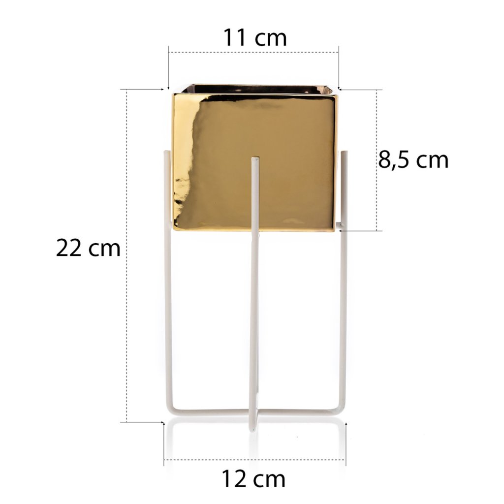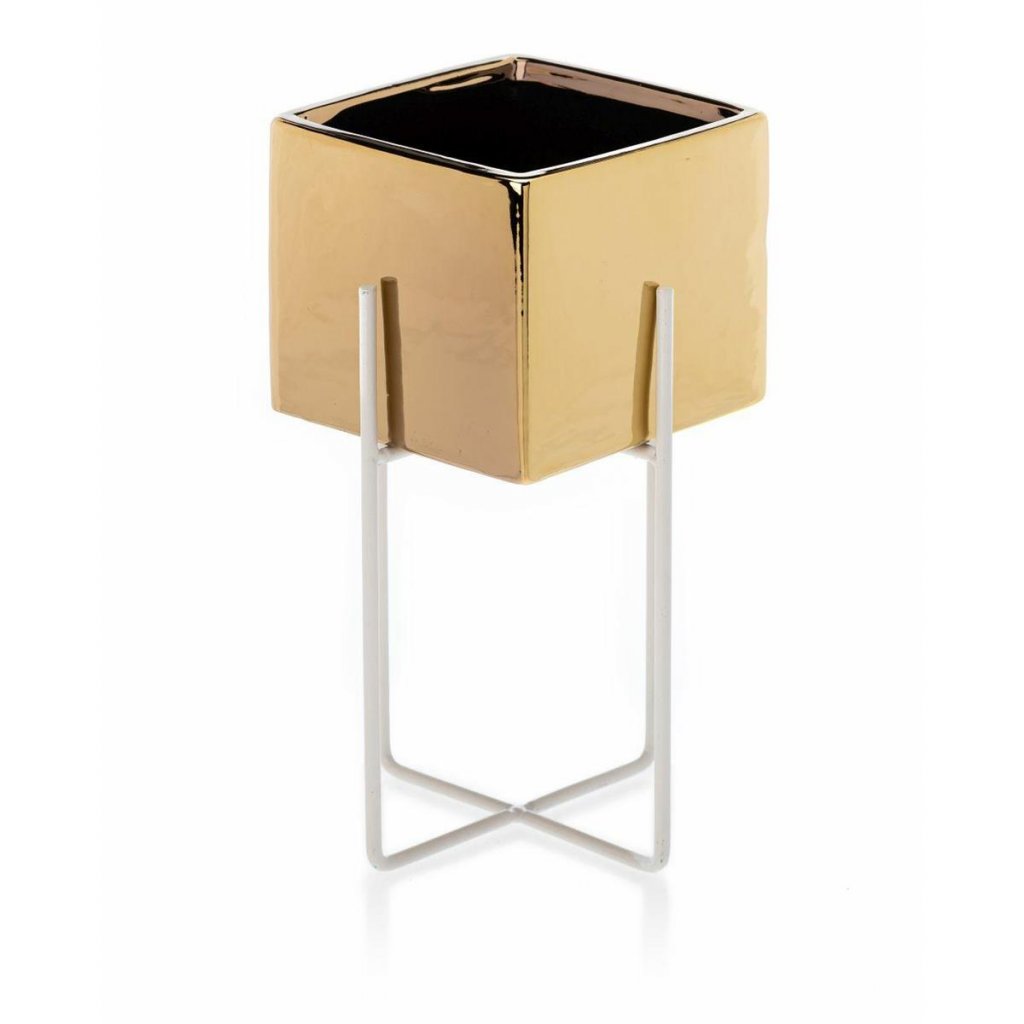 Květináč s elegantním kovovým stojanem, který zaujme svým designem a praktičností. Jeho moderní styl z něj činí krásnou dekoraci ideální do každého interiéru v domácnosti. Design dokonale ladí se zelenými rostlinami, které spolu vytvářejí harmonii estetiky a funkčnosti. Díky kovovému stojanu květináč působí noblesním dojmem.Produkt se pyšní odolností při které konstrukce zajišťuje bezpečnost rostlin. Květináč je vyroben z keramiky, nepraská, nedeformuje se a je vhodný prakticky pro všechny druhy rostlin.
