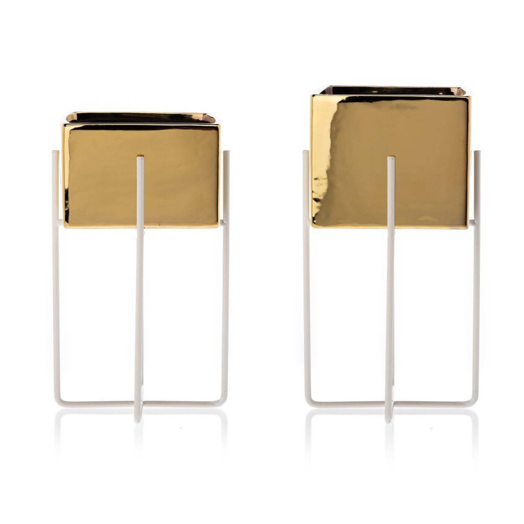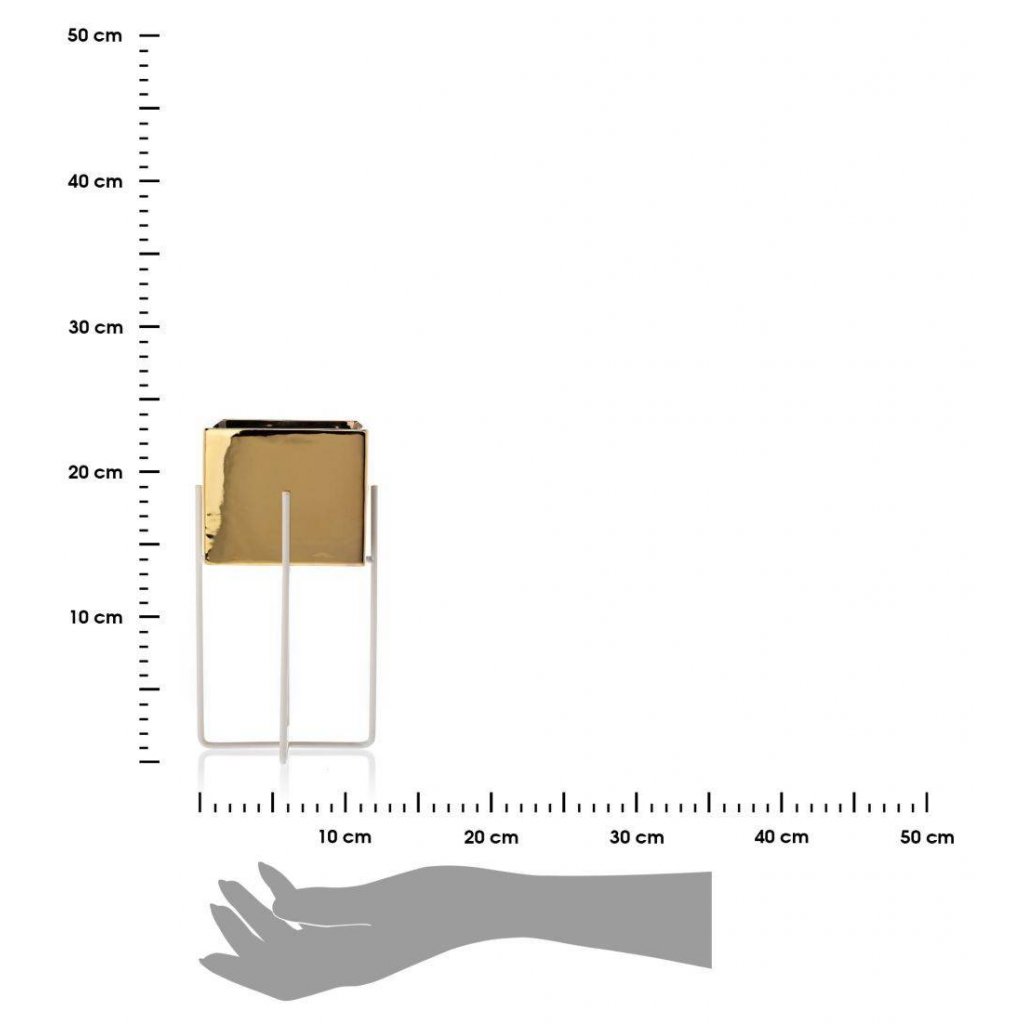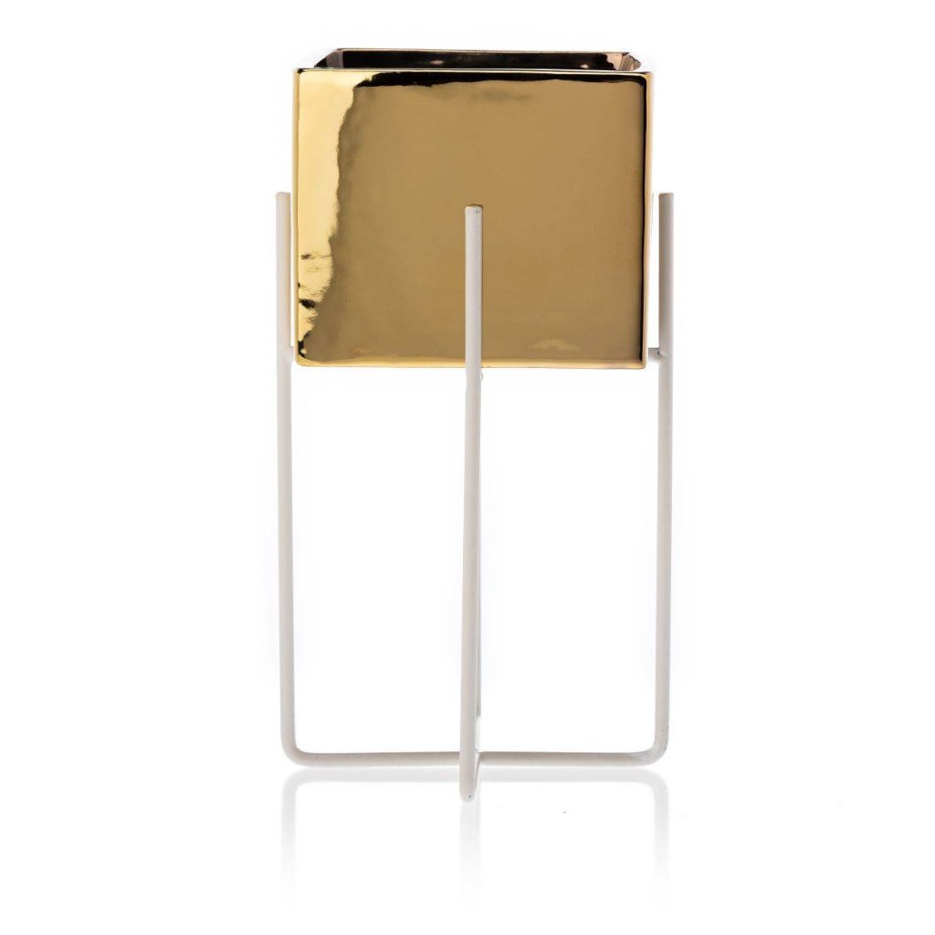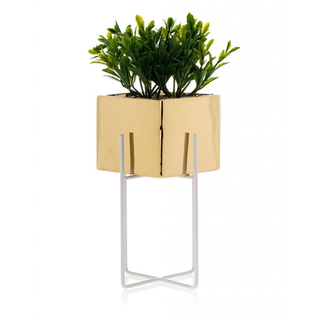 KERAMICKÝ KVĚTINÁČ SE STOJÁNEM MIZU 22X12 CM ZLATÁ/BÍLÁ