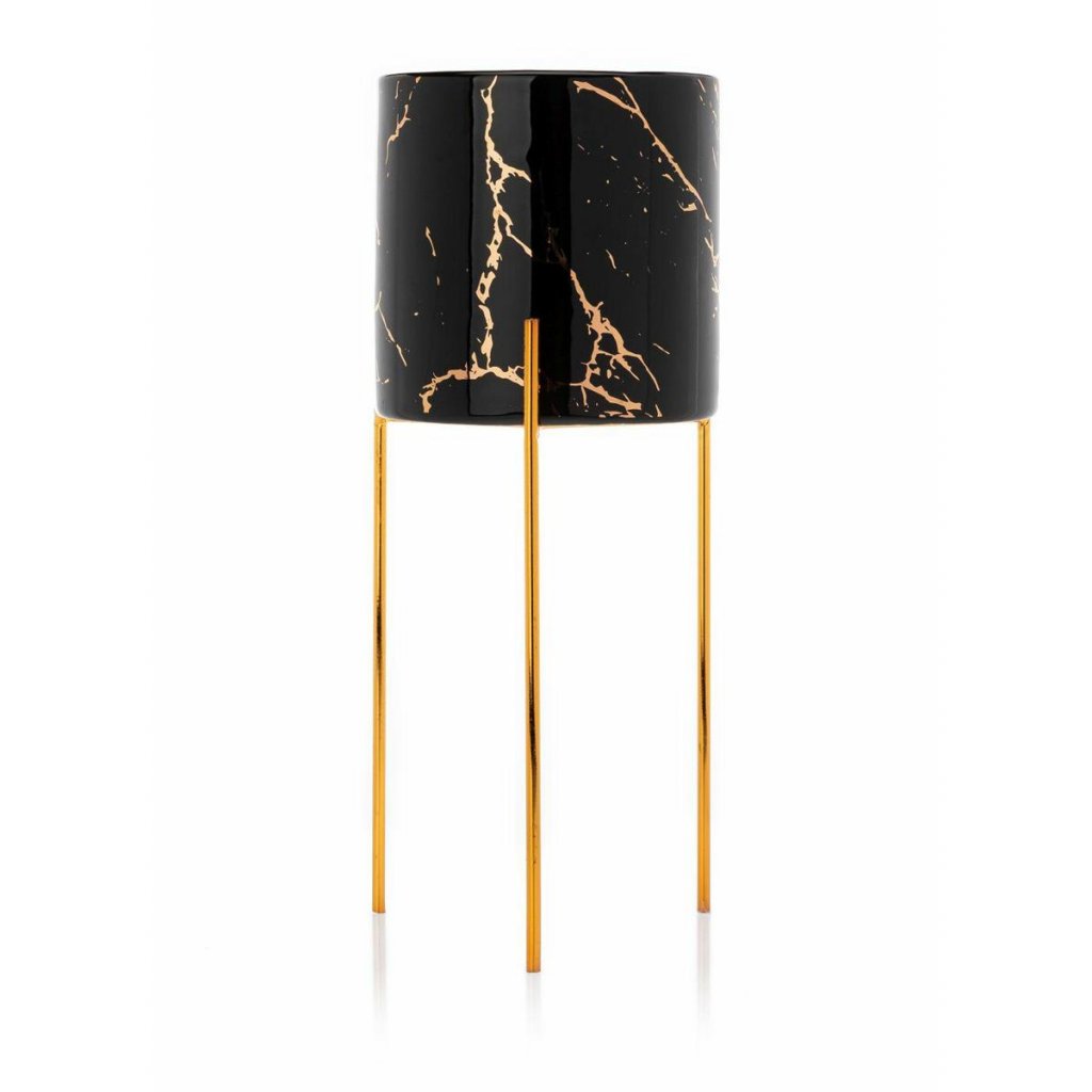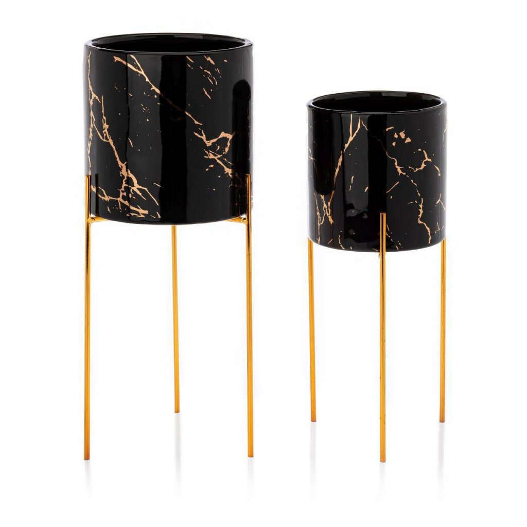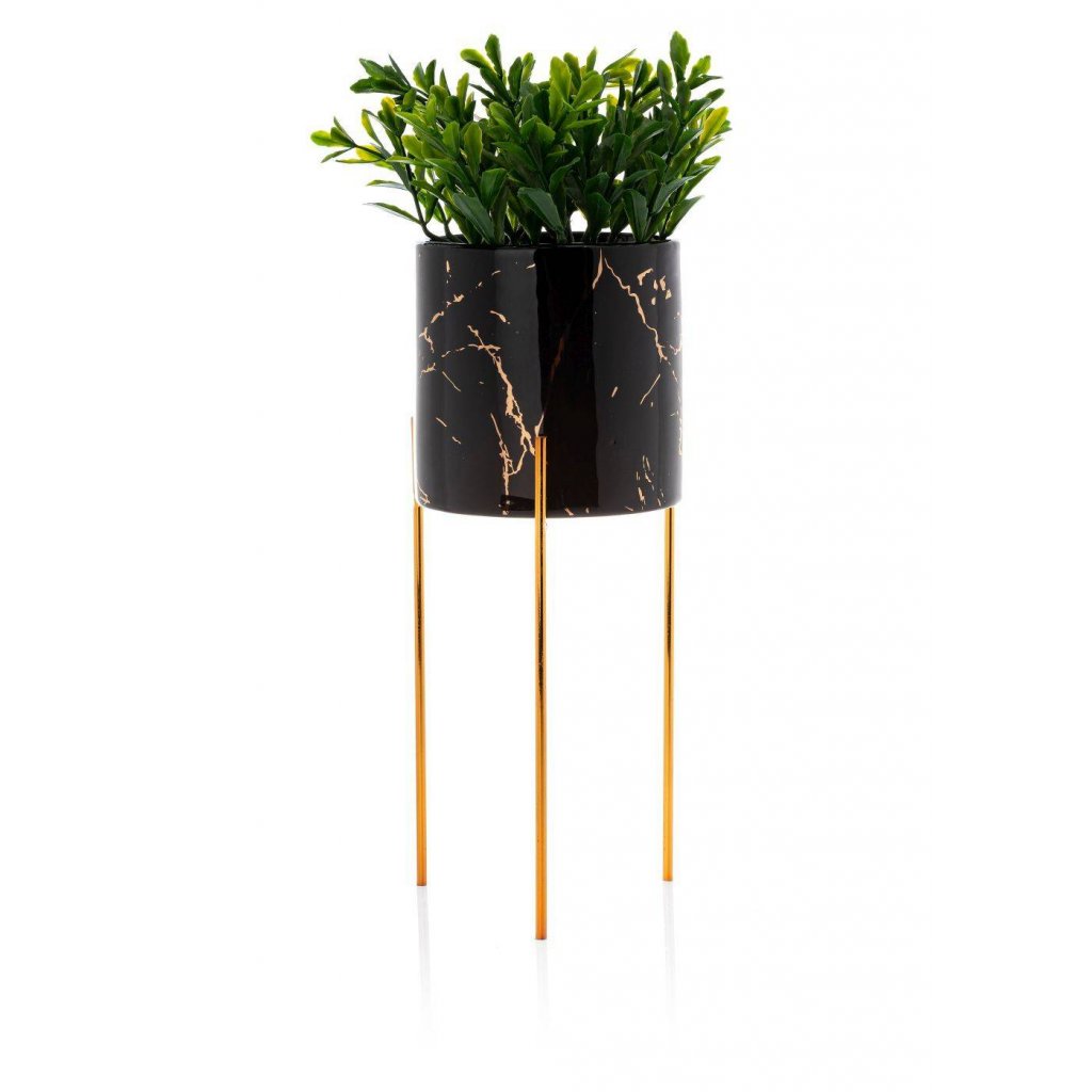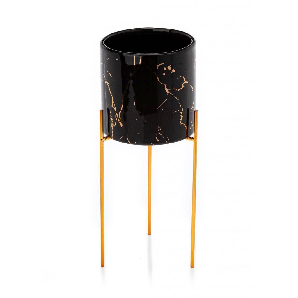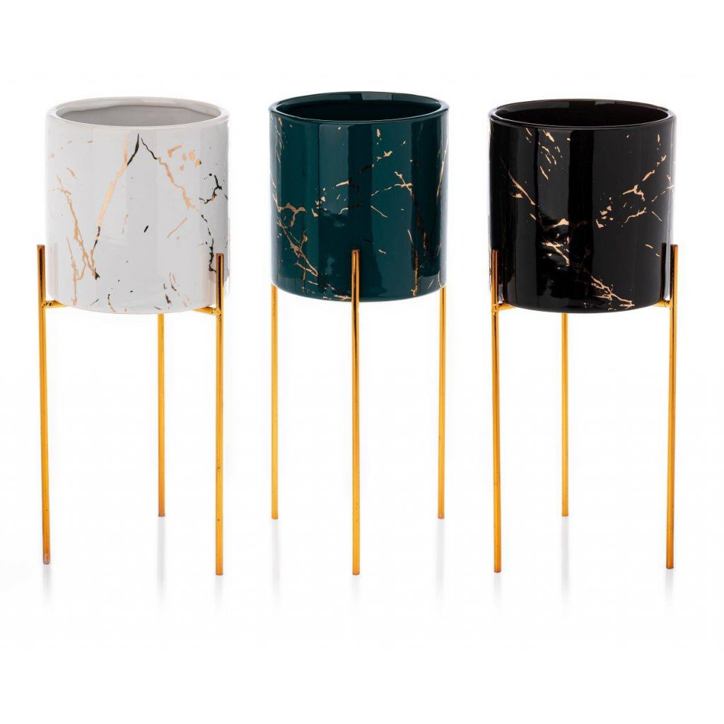 Květináč s elegantním kovovým stojanem, který zaujme svým designem a praktičností. Jeho moderní styl z něj činí krásnou dekoraci ideální do každého interiéru v domácnosti. Design dokonale ladí se zelenými rostlinami, které spolu vytvářejí harmonii estetiky a funkčnosti. Díky kovovému stojanu květináč působí noblesním dojmem.Produkt se pyšní odolností při které konstrukce zajišťuje bezpečnost rostlin. Květináč je vyroben z keramiky, nepraská, nedeformuje se a je vhodný prakticky pro všechny druhy rostlin.