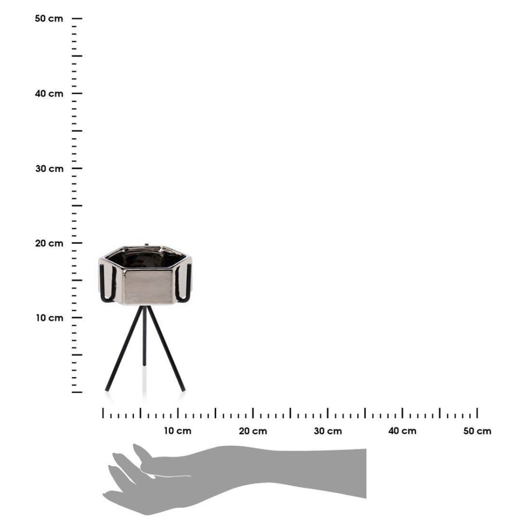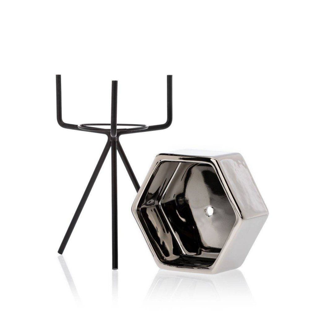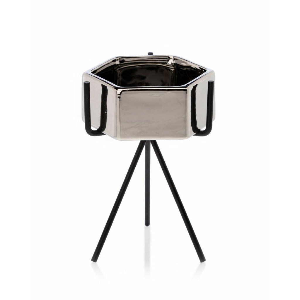 Květináč s elegantním kovovým stojanem, který zaujme svým designem a praktičností. Jeho moderní styl z něj činí krásnou dekoraci ideální do každého interiéru v domácnosti. Design dokonale ladí se zelenými rostlinami, které spolu vytvářejí harmonii estetiky a funkčnosti. Díky kovovému stojanu květináč působí noblesním dojmem.Produkt se pyšní odolností při které konstrukce zajišťuje bezpečnost rostlin. Květináč je vyroben z keramiky, nepraská, nedeformuje se a je vhodný prakticky pro všechny druhy rostlin.