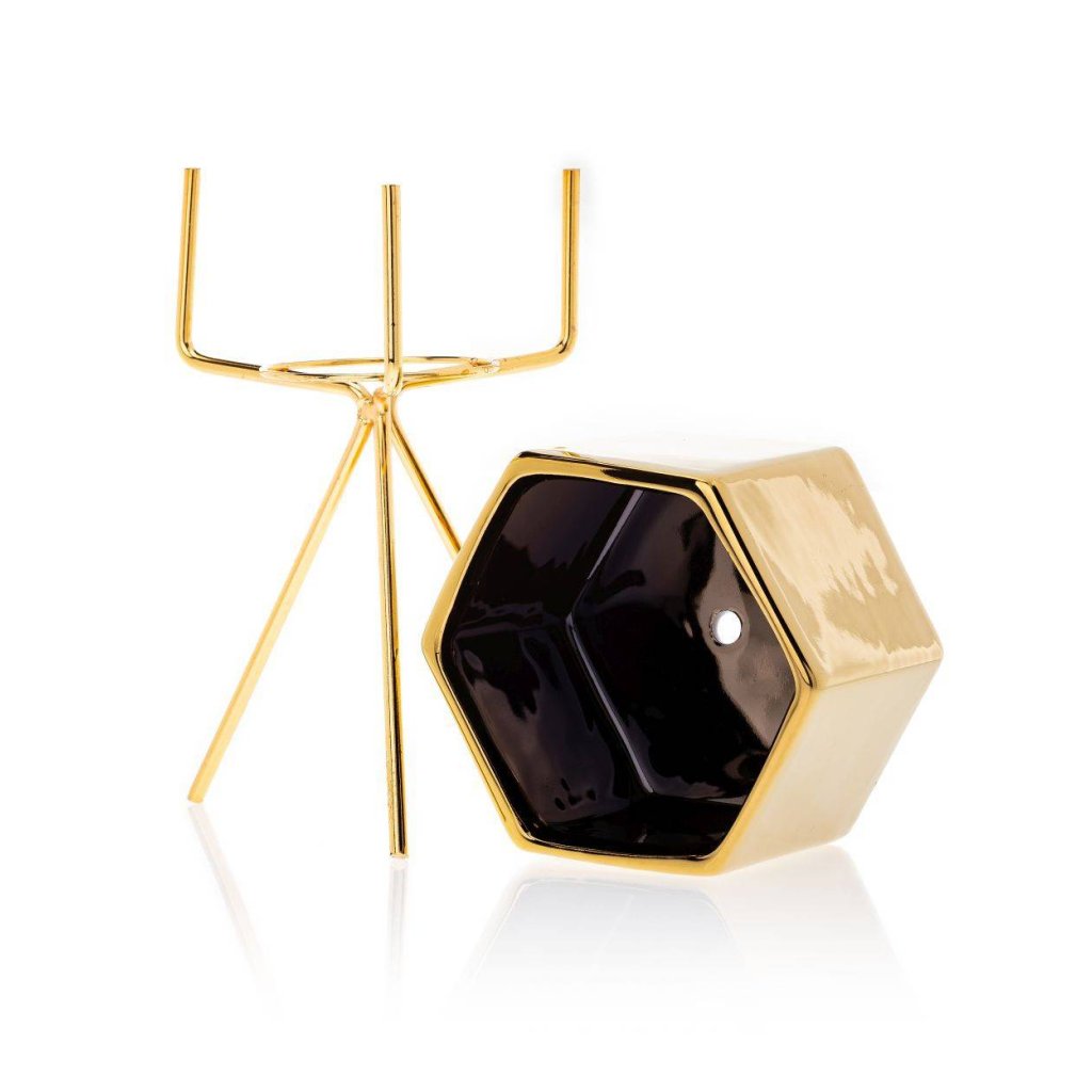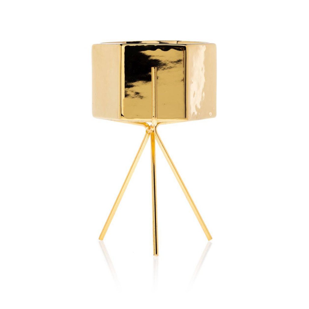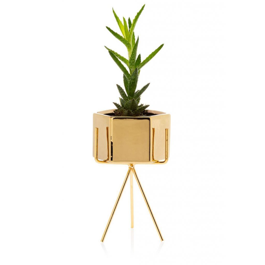 KERAMICKÝ KVĚTINÁČ SE STOJÁNEM SASHI 18X10 CM ZLATÁ