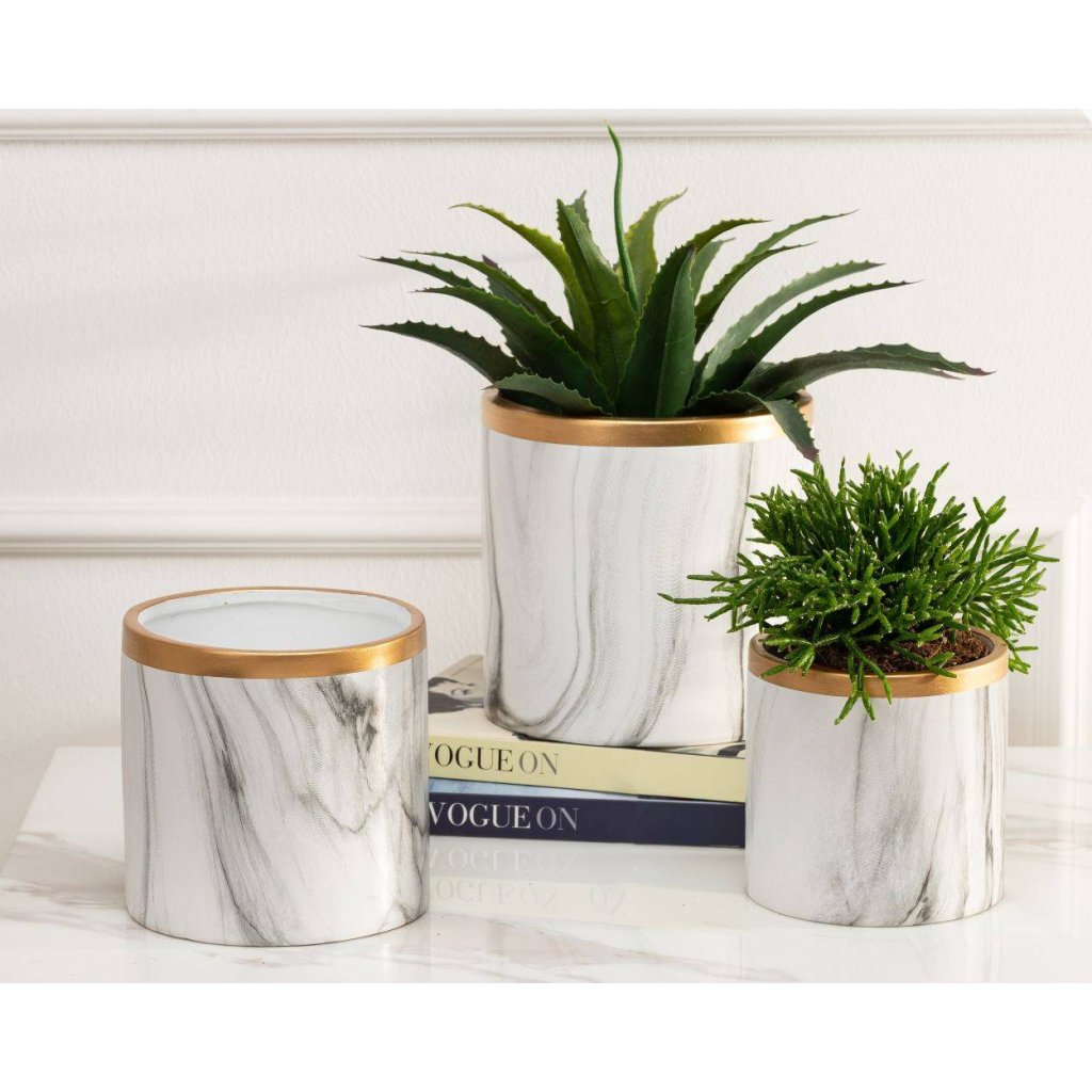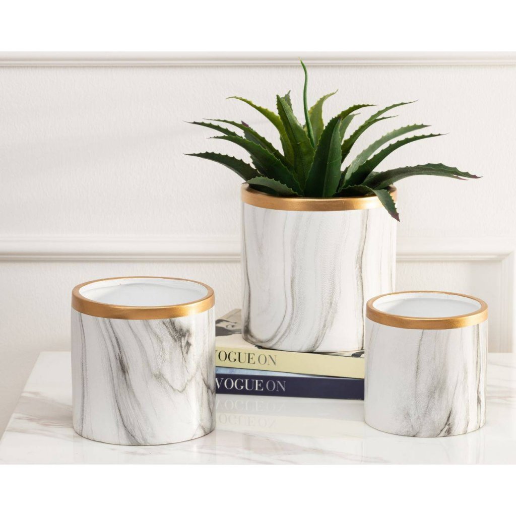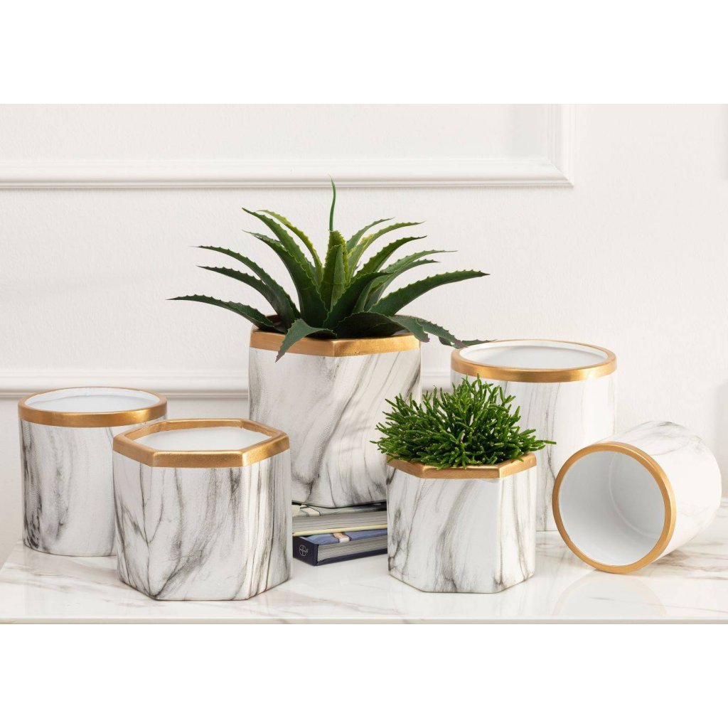 KERAMICKÝ KVĚTINÁČ SONA 11X11 CM BÍLÁ/ZLATÁ